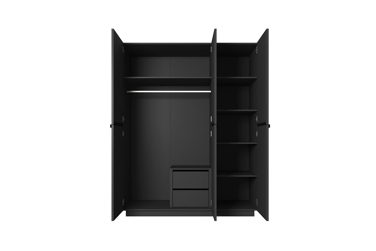 Skříň Nicole 150 cm se 2 skrytými zásuvkami - černý mat / černé úchyty, Šířka: 150, Výška: 207, Hloubka: 62
