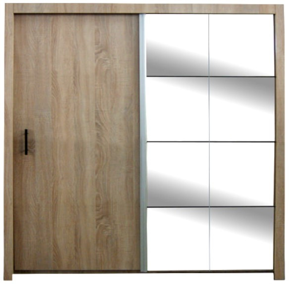 Nová šatní skříň se zrcadly a posuvnými dveřmi v provedení dub sonoma.