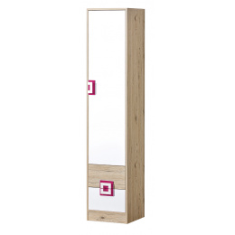 Šatní skříň policová NICO 05, Světlý Dub/Bílá/Růžová