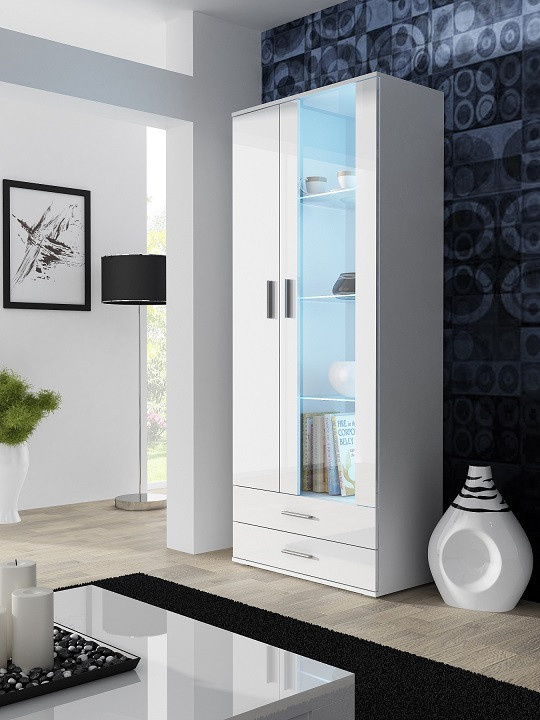 2D2S rozměry skříně: š/s/g 192cm/80cm/41cm, materiál: Korpus: matná laminovaná dřevotříska Čela: vysoce lesklá laminovaná MDF deska Úchyty: plast (dodatečně lze dokoupit LED osvětlení - 3LED)