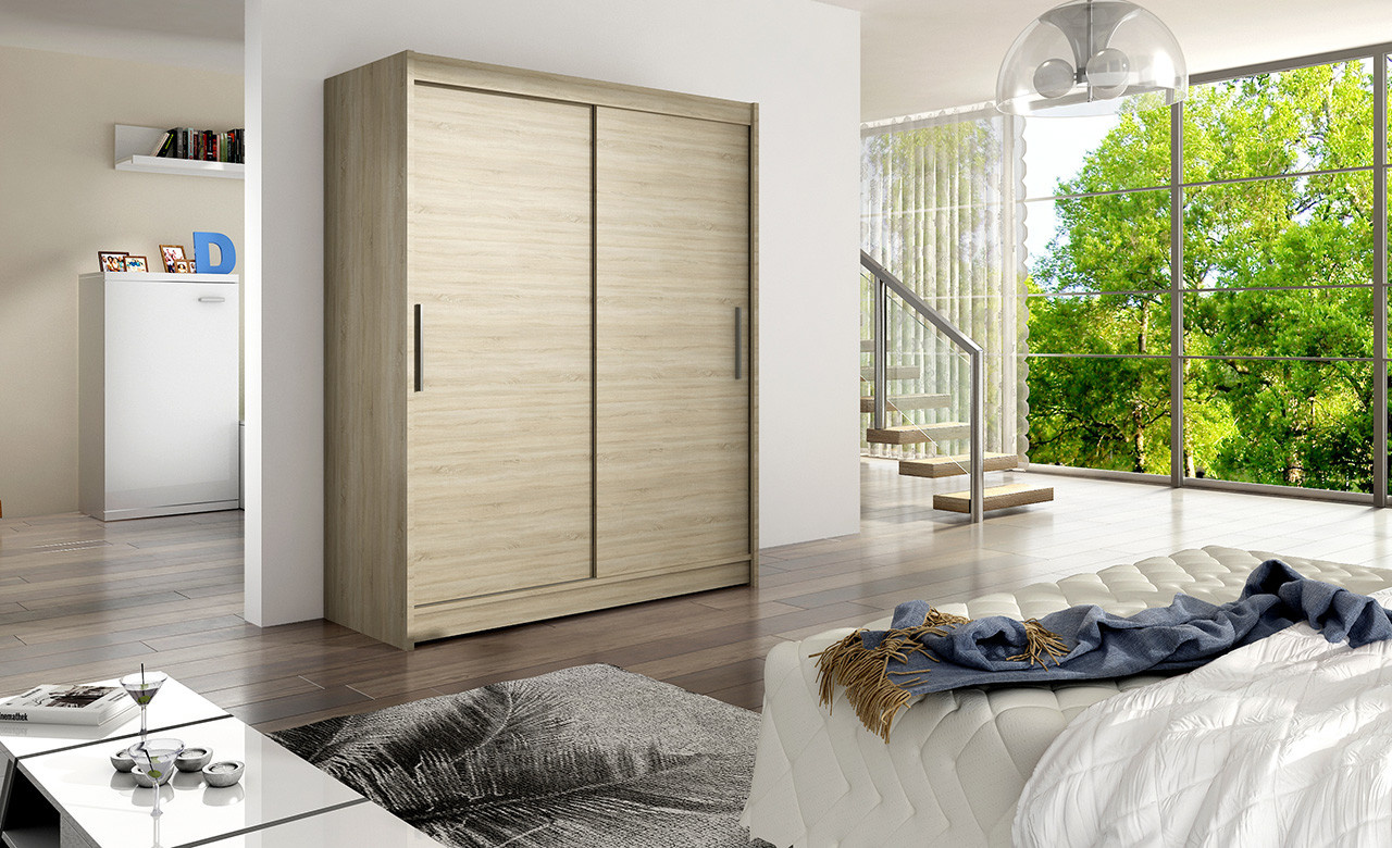 Jednoduchý a elegantní design skříně osloví i náročné zákazníky. Je vyrobena z lamina o síle 16 mm a hrany jsou ukončeny ABS lištou. Vodící lišty jsou vyrobeny z odolného hliníku a splňují požadavky pro každodenní užívání. Díky svému uspořádání poskytuje dostatek úložného prostoru. Skvěle se hodí do ložnice, předsíně, dětského, nebo studentského pokoje. Skříň je dodávána v demontu a součástí je montážní plánek včetně všech potřebných spojovacích materiálů. Vyobrazené dekorace nejsou v ceně.