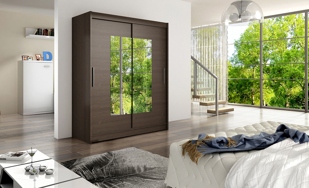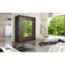 Jednoduchý a elegantní design skříně osloví i náročné zákazníky. Eleganci podtrhují dlouhé stříbrné úchyty a zrcadla, která jsou nalepena na dveřích skříně. Je vyrobena z lamina o síle 16 mm a hrany jsou ukončeny ABS lištou. Vodící lišty jsou vyrobeny z odolného hliníku a splňují požadavky pro každodenní užívání. Díky svému uspořádání poskytuje dostatek úložného prostoru. Skvěle se hodí do ložnice, předsíně, dětského, nebo studentského pokoje. Skříň je dodávána v demontu a součástí je montážní plánek včetně všech potřebných spojovacích materiálů. Vyobrazené dekorace nejsou v ceně.