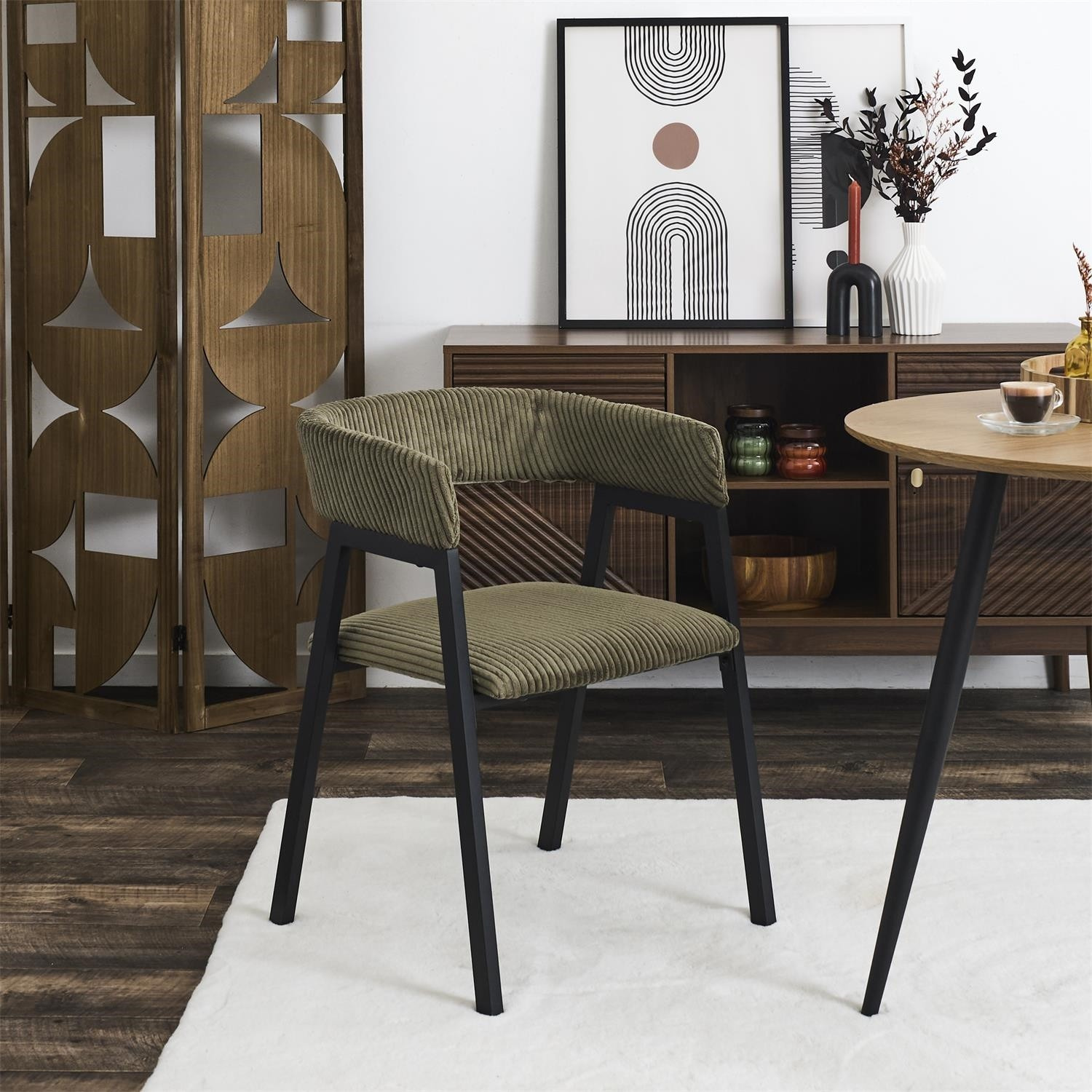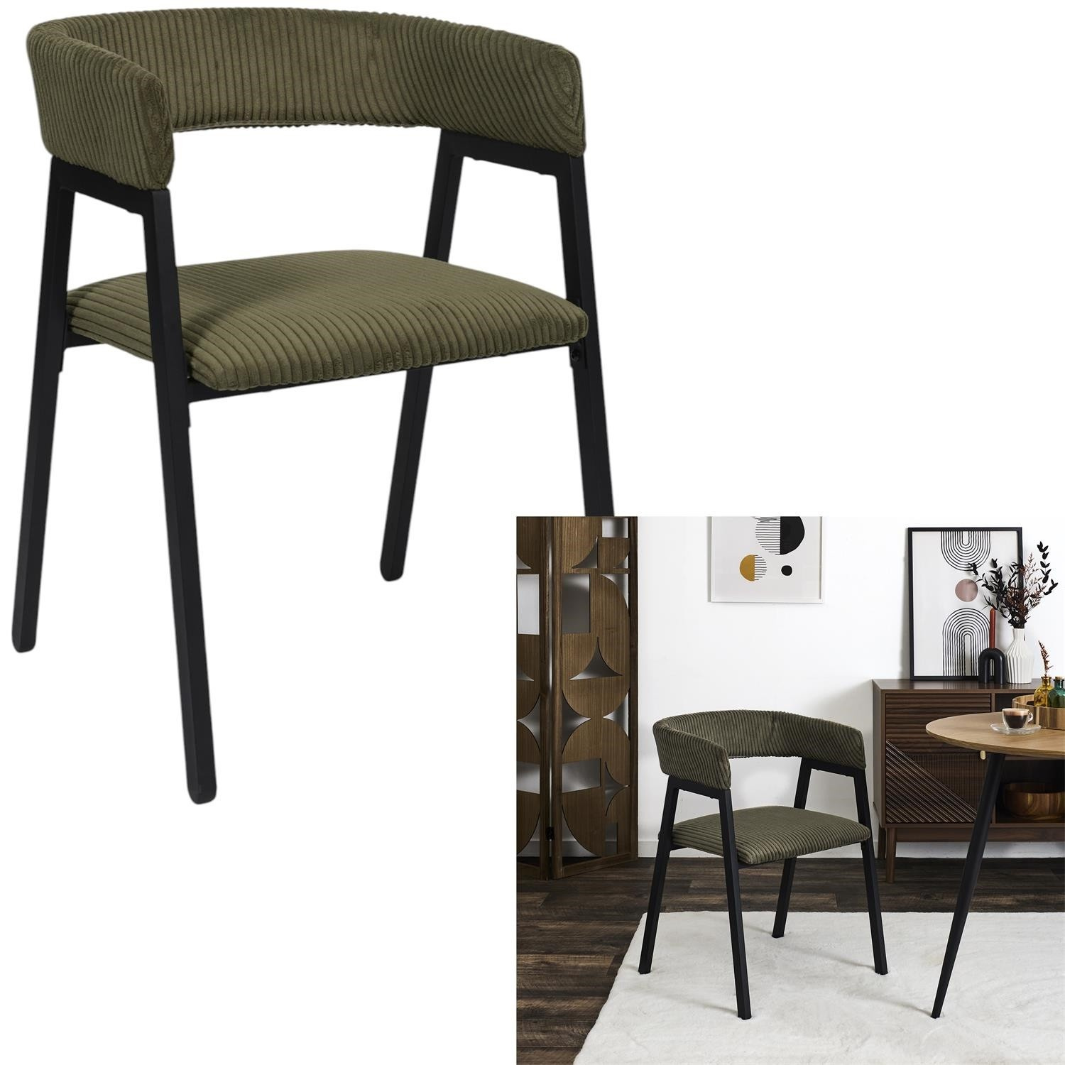 A Scott fotel kordbársony, otthonos kárpitozással nemcsak egy kényelmes szék az étkezőbe vagy a nappaliba. A minimalista, egyszerű bútorforma biztosítja, hogy egyszerre legyen elegáns és időtálló. Szék fém alappal és kárpitozott ülőkével és háttámlával. Max. szék terhelhetősége 110 kg. Összeszerelést igényel.
