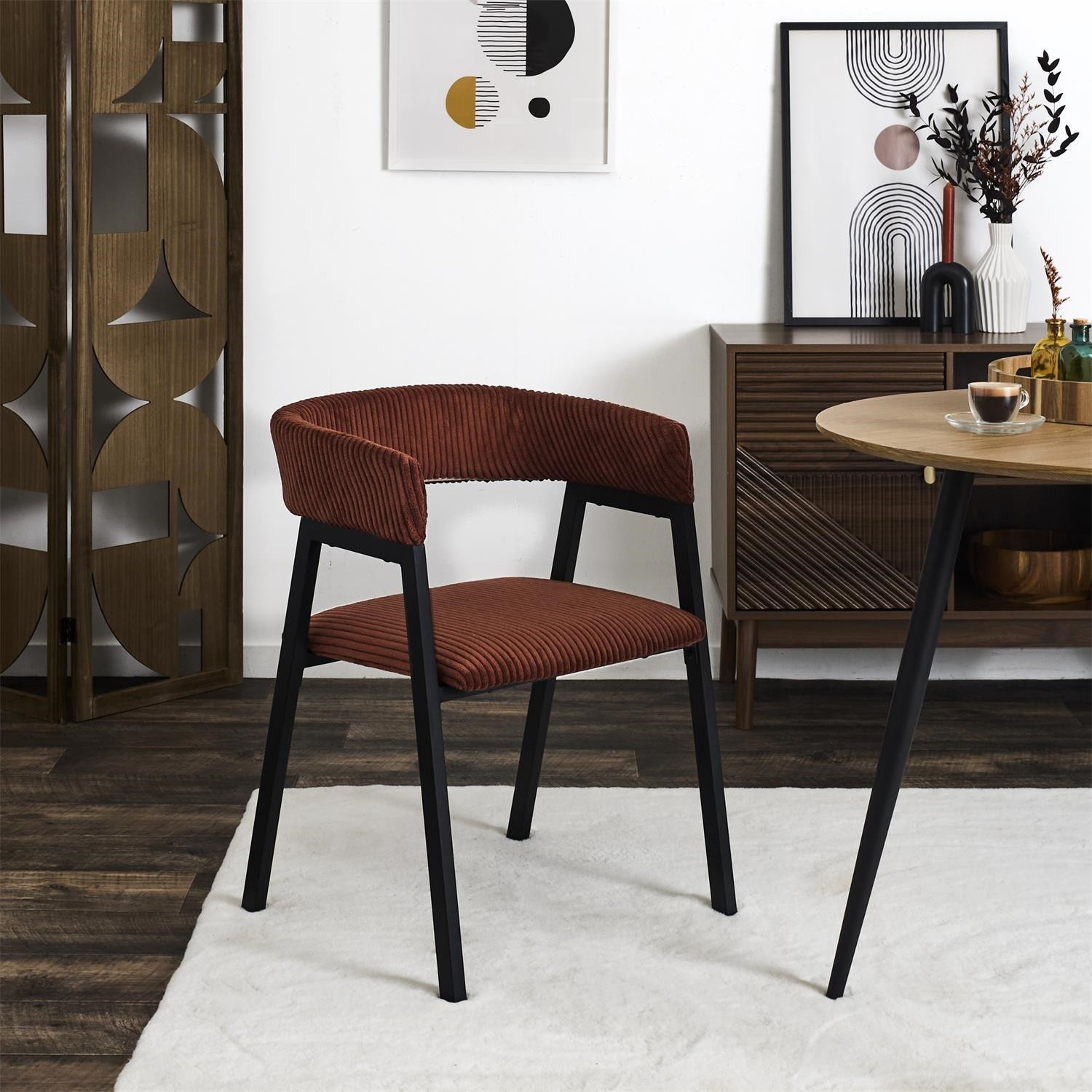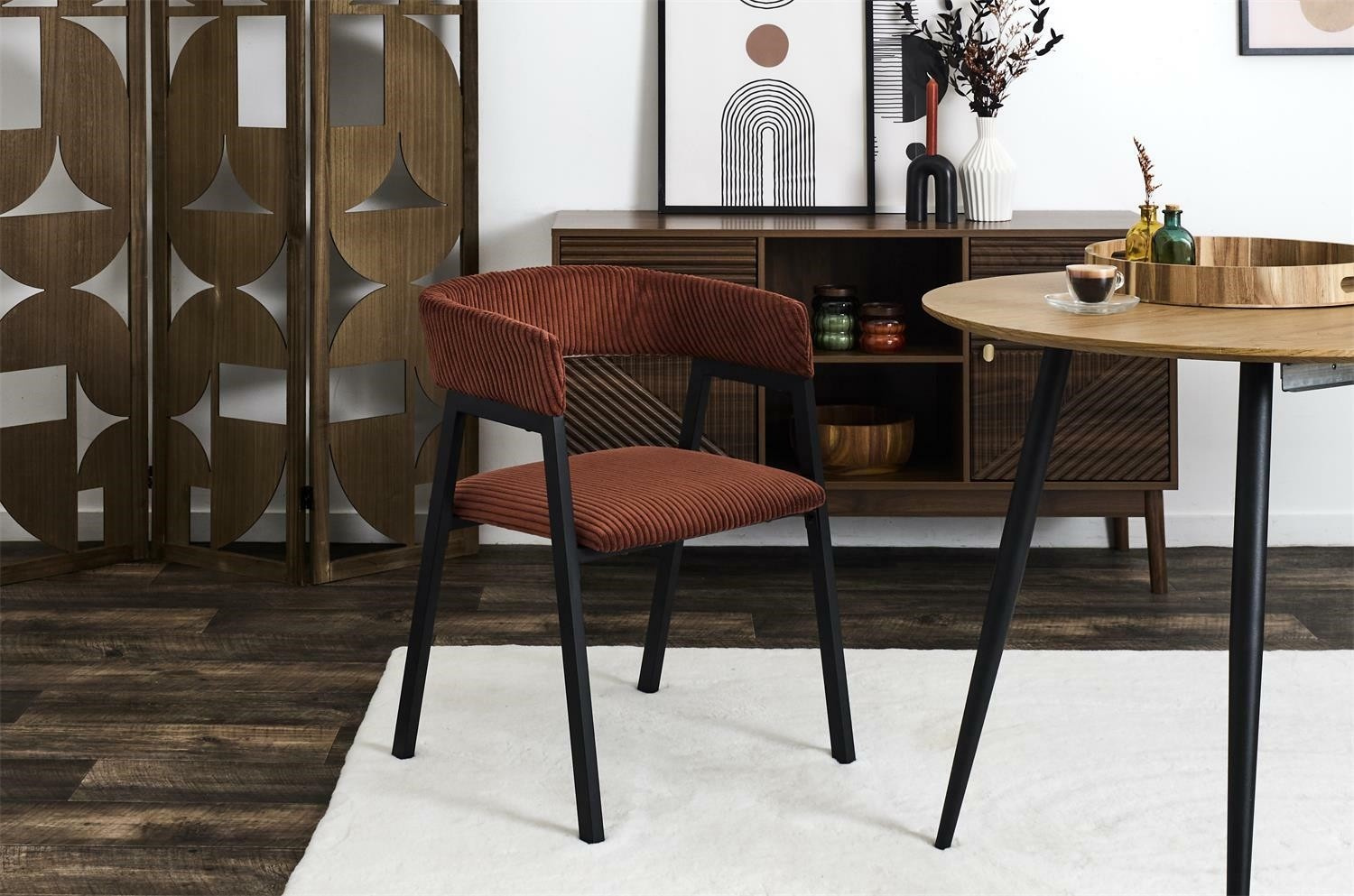 A Scott fotel kordbársony, otthonos kárpitozással nemcsak egy kényelmes szék az étkezőbe vagy a nappaliba. A minimalista, egyszerű bútorforma biztosítja, hogy egyszerre legyen elegáns és időtálló. Szék fém alappal és kárpitozott ülőkével és háttámlával. Max. szék terhelhetősége 110 kg. Összeszerelést igényel.