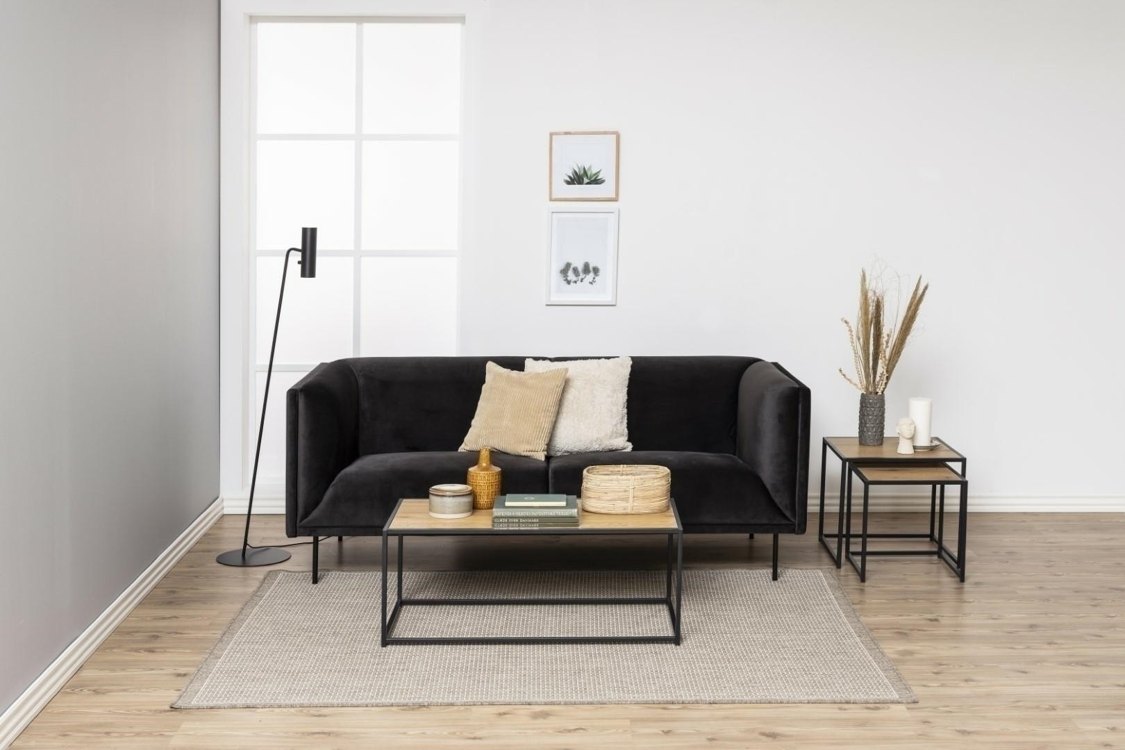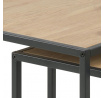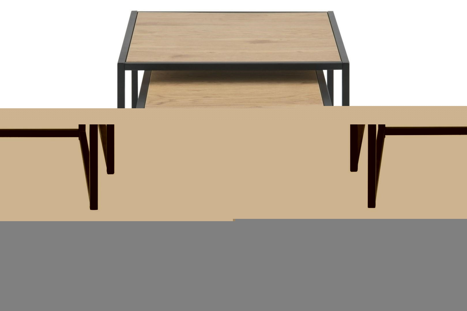 A dohányzóasztal készlet fekete porfestett fém alappal és tölgy színű laminált lappal készült. Az asztalok az ipari stílust képviselik, és tökéletesen illeszkednek az ipari belső terekhez. A nagyobb asztal méretei 45x50x50, a kisebb asztal méretei 40x40x40