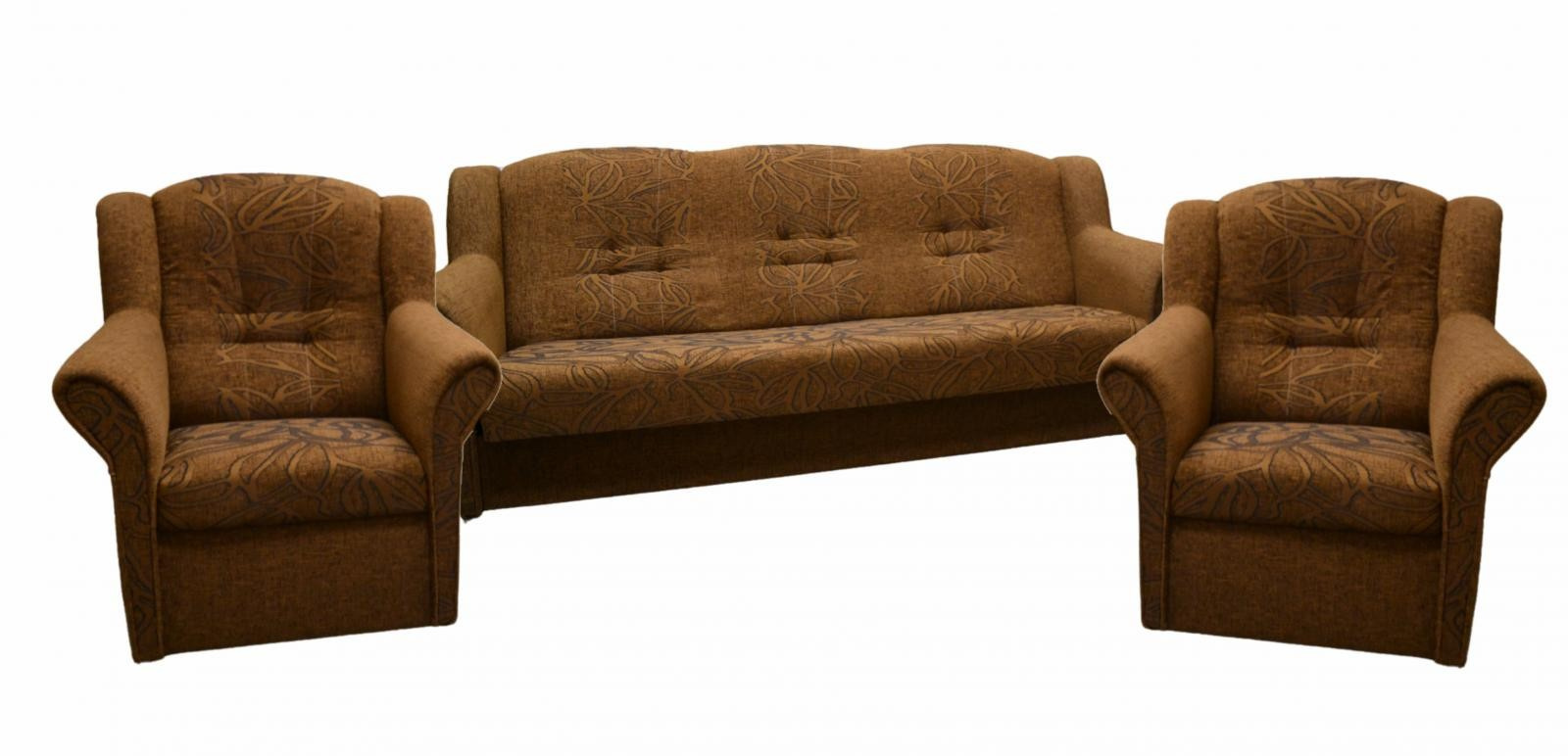 Agata je stále velmi oblíbeným klasickým modelem sedací soupravy v provedení 3F+1+1. Je velmi pohodlná a zároveň praktická. Sedací souprava je rozkládací a samozřejmostí je i úložný prostor. Jednoduchým rozkladem pomocí systému "klik klak" vznikne lůžko k příležitostnému přespání Vaší návštěvy. Sedací souprava je potažena kvalitní látkou Bergamo a nabízíme ji v několika barvách, ze kterých si určitě vyberete tu nejvhodnější pro Váš obývací pokoj. Výplň sedáků tvoří pružiny v kombinaci s kvalitní PUR pěnou. Tato kombinace zajistí velmi pohodlné sezení. Cena sedací soupravy je uvedena za rozkládací trojsed a dvě křes