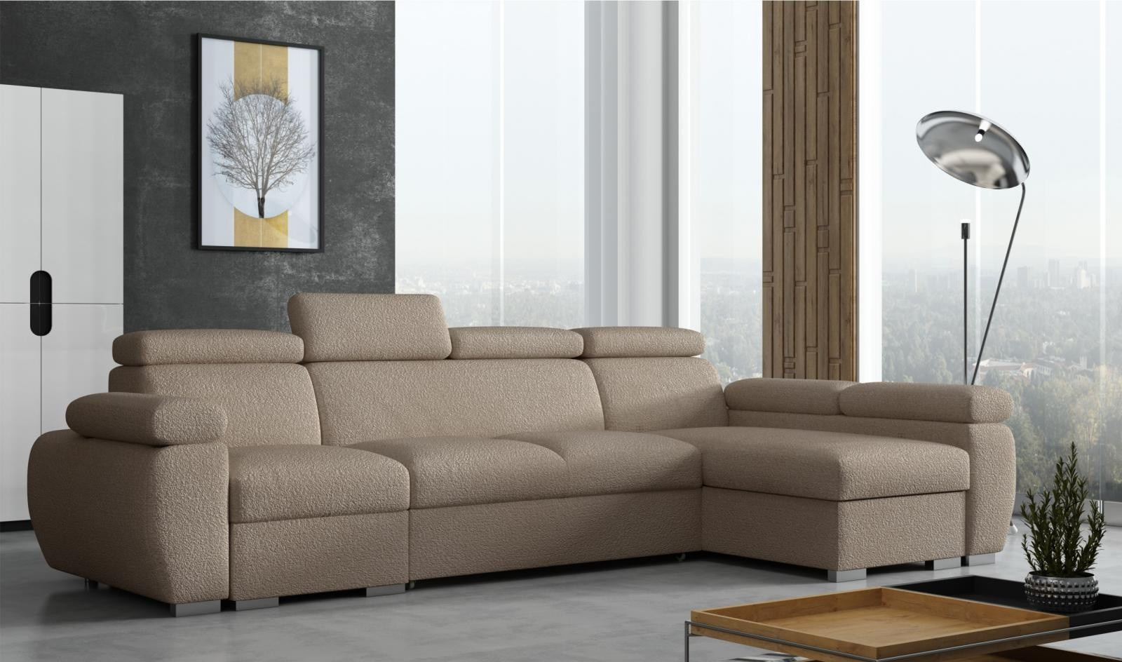 Sedací souprava Bodie se stane příjemným centrem odpočinku, nebo setkání s rodinou a přáteli. Je velmi pohodlná, praktická a nabízí dostatek místa k sezení. Praktickou stránkou sedací soupravy je možnost rozložení k příležitostnému přespání a také nepostradatelný úložný prostor. Pohodlí při sezení zajišťuje výplň sedáků, kterou tvoří kombinace vlnitých pružin s kvalitní PUR pěnou. Při odpočinku, nebo sledování televize Vám zvýší pohodlí polohovací opěrky. Sedací souprava je potažena kvalitní látkou Anthology, která je originální a extrémně měkká, se specifickou bouclé texturou. Látka se snadno čistí a udržuje v perfektním stavu. Sedací soupravu nabízíme v levém i pravém provedení. Vyobrazené doplňky a dekorace nejsou v ceně. Fotografie sedací soupravy v rozkladu jsou pouze ilustrační. Správný barevný odstín je zobrazen na úvodní fotografii.