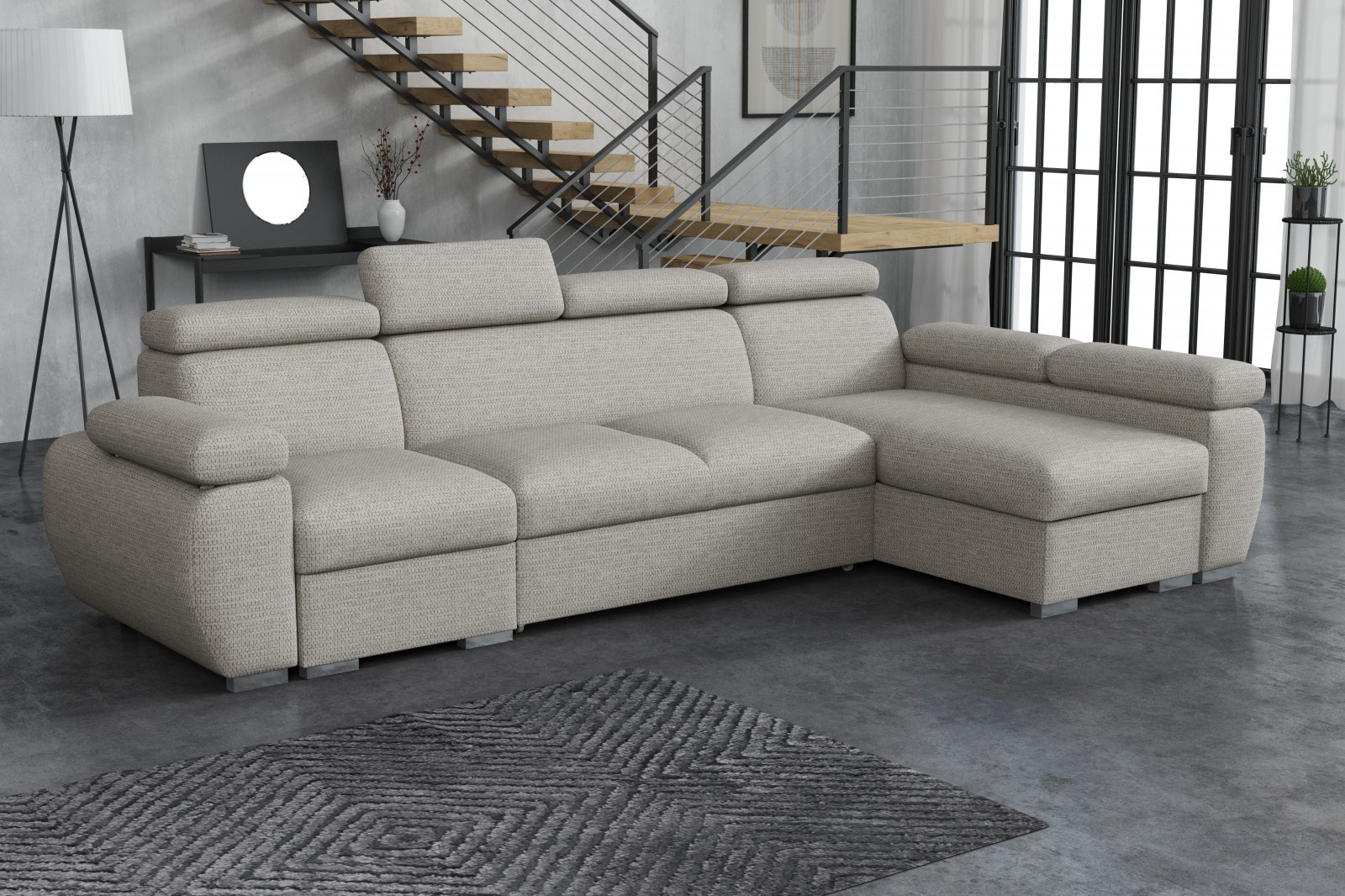 Sedací souprava Bodie se stane příjemným centrem odpočinku, nebo setkání s rodinou a přáteli. Je velmi pohodlná, praktická a nabízí dostatek místa k sezení. Praktickou stránkou sedací soupravy je možnost rozložení k příležitostnému přespání a také nepostradatelný úložný prostor. Pohodlí při sezení zajišťuje výplň sedáků, kterou tvoří kombinace vlnitých pružin s kvalitní PUR pěnou. Při odpočinku, nebo sledování televize Vám zvýší pohodlí polohovací opěrky. Sedací souprava je potažena kvalitní látkou Aragon, která je vyrobena z vysoce kvalitní příze, extrémně měkká a příjemná na dotek. Tato tkanina je odolná před pronikáním vlhkosti a tekutin. Látka se snadno čistí a udržuje v perfektním stavu. Sedací soupravu nabízíme v levém i pravém provedení. Vyobrazené doplňky a dekorace nejsou v ceně. Fotografie sedací soupravy v rozkladu jsou pouze ilustrační. Správný barevný odstín je zobrazen na úvodní fotografii.