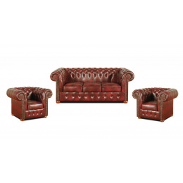 Sedací souprava Chesterfield Classic 3+1+1 kůže bordó