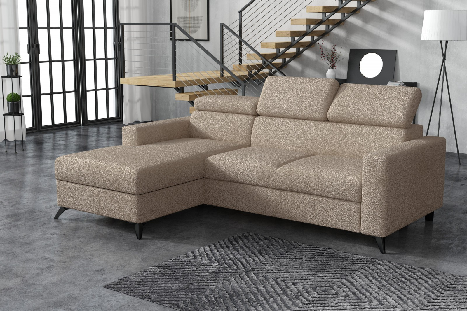 Sedací souprava Mildred osloví každého, kdo preferuje moderní vzhled a zároveň pohodlí a praktičnost. Je potažena kvalitní potahovou látkou. Sedací souprava je velmi pohodlná a dostatečně velká na posezení s přáteli, nebo rodinou. Pro případ, že se návštěva zdrží přes noc, je sedací souprava vybavena rozkladem, díky kterému sedací soupravu jednoduše přeměníte v prostorné lůžko. Sedací souprava má praktický úložný prostor, který můžete využít např., na lůžkoviny. Pohodlí při sezení zajišťuje výplň sedáků, kterou tvoří kombinace pružin faliste s kvalitní PUR pěnou. Komfort a pohodlí při odpočinku zvyšuje polohovací opěrka hlavy. Sedací soupravu nabízíme v levém i pravém provedení.