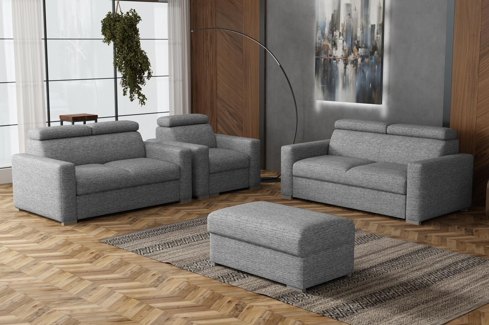 Sedací souprava Petrit 3+2+1+taburet Aragon šedá
