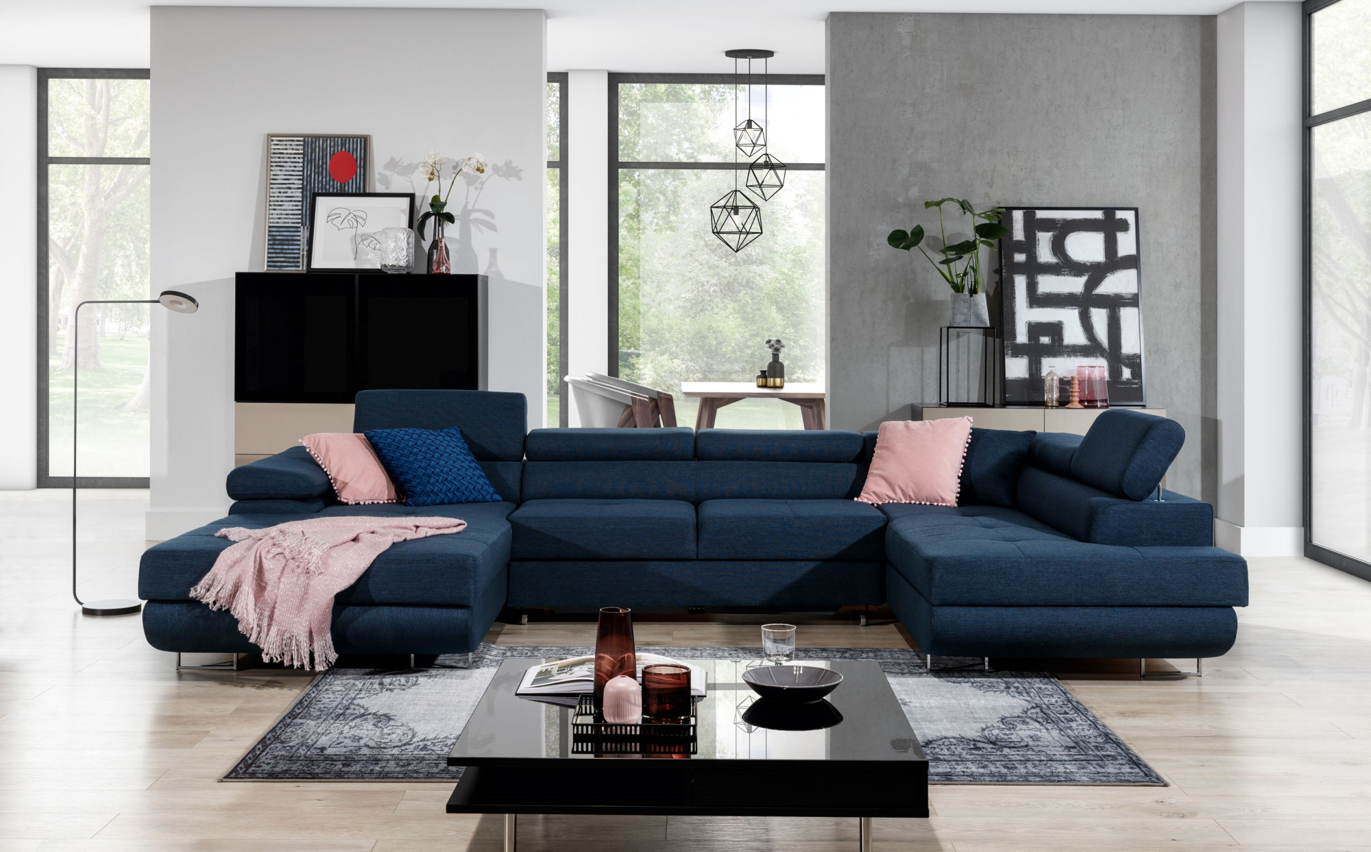 Objevte dokonalou kombinaci stylu, pohodlí a funkčnosti s naší rohovou pohovkou Rodrigo. Tato pohovka ve tvaru U je navržena tak, aby se stala středobodem vašeho obývacího pokoje, a to díky svému modernímu designu a elegantním detailům.