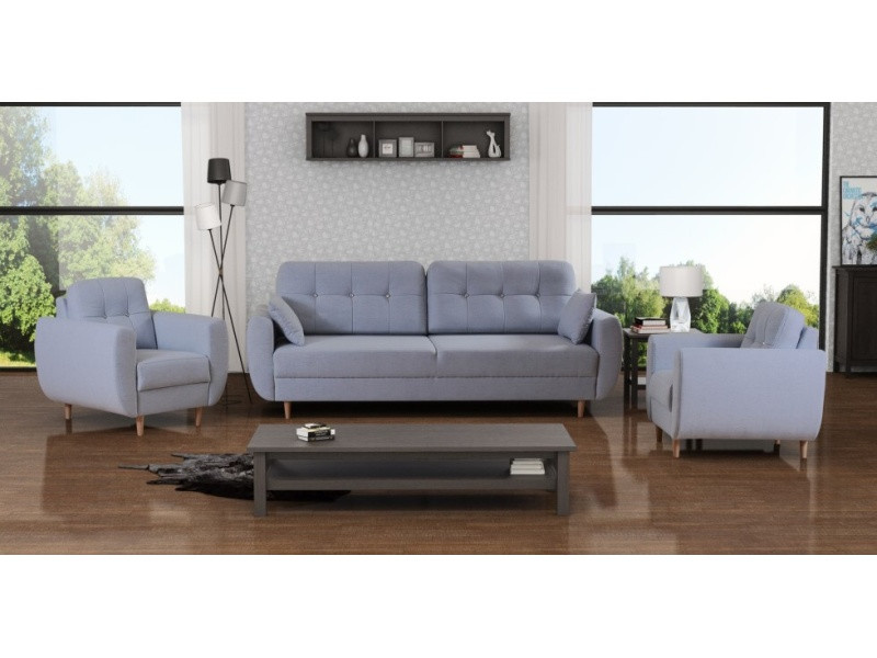 VERDI je moderní sedací souprava - pohovka s dvěmi křesly . Sedací část je vyrobena z vlnitých pružin a dekorativní prvky jsou z přírodního dřeva. Moderní mechanismus umožňuje umístit sedačku do spací polohy lehkým zvednutím sedadla a jeho posunutím dopředu. Ve srovnání s tradičními řešeními tohoto typu tato konstrukce eliminuje riziko poškrábání podlahy.