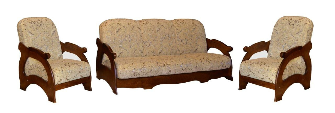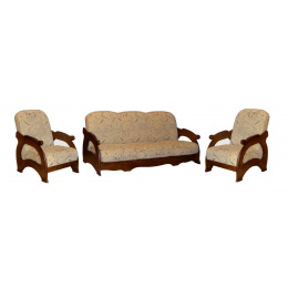 Sedací souprava Viki s rozkládacím trojsedem a dvěma křesly. Sedací souprava má úložný prostor a jednoduchým rozkladem vznikne lůžko 188x130 cm na občasné přespání pro dvě osoby. Sedací souprava je očalouněná kvalitní látkou Vita. Čalounění v kombinaci se dřevem působí velice stylově. Bočnice jsou vyrobené z bukového masivu, moření je možné v různých barevních odstínech. Sedací soupravu lze objednat i v jiných barevných provedeních (viz. vzorník látek níže). Odstíny nebo kresba dřeva nemusí přesně odpovídat vyobrazeným vzorkům.