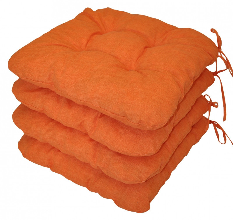 Set 4 kusů univerzálních sedáků plněných drceným molitanem. | Praktický sedák na židli plněný drceným molitanem. Díky tomu si sedák zachová svůj tvar i výšku po celou dobu používání. Sedák má čtvercový tvar se zaoblenými rohy. Velikost sedáku je 39x39 cm. Výška sedáku je přibližně 7 cm. Sedák je opatřen praktickými šňůrkami k přichycení k židli. Sedák můžete použít na běžné židle, plastový nábytek nebo zahradní nábytek. Šňůrky pro upevnění k židli jsou vyrobeny přímo z dané látky sedáku, čímž je zajištěna sladěnost šňůrek s celým sedákem a výsledný efekt je dokonalý. Délka šňůrek je 30 cm a ve dvou rozích je všito po dvou šňůrkách pro snadné přichycení sedáku k židli. Šňůrky jsou tak dostatečně dlouhé i pro případ, kdy je potřebujete uvázat až kolem opěradla ( zezadu za židlí). Další výhodou je, že naše sedáky jsou pratelné na 40 stupňů Celsia.