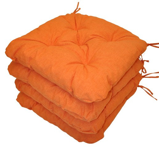Set čtyřech kusů univerzálních sedáků plněných drceným molitanem. | Praktický sedák na židli plněný drceným molitanem. Díky tomu si sedák zachová svůj tvar i výšku po celou dobu používání. Sedák má čtvercový tvar se zaoblenými rohy. Velikost sedáku je 42x42 cm. Výška sedáku je přibližně 7 cm. Sedák je opatřen praktickými šňůrkami k přichycení k židli. Sedák můžete použít na běžné židle, plastový nábytek nebo zahradní nábytek. Šňůrky pro upevnění k židli jsou vyrobeny přímo z dané látky sedáku, čímž je zajištěna sladěnost šňůrek s celým sedákem a výsledný efekt je dokonalý. Délka šňůrek je 30 cm a ve dvou rozích je všito po dvou šňůrkách pro snadné přichycení sedáku k židli. Šňůrky jsou tak dostatečně dlouhé i pro případ, kdy je potřebujete uvázat až kolem opěradla ( zezadu za židlí). Další výhodou je, že naše sedáky jsou pratelné na 40 stupňů Celsia.