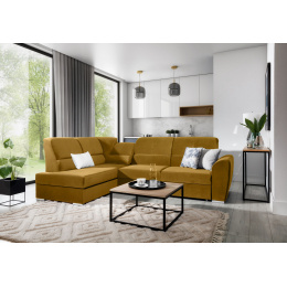 The Siber corner settee is a perfect solution for the people who value order and organisation. It helps to save space thanks to the large bedding container. Its high profiled adjustable backrests, decorated with stylish stitching, will make even hours of relaxation with your favourite TV series a convenient and comfortable experience. Dimensions of the corner settee: 270 x 186 x 93 cm, allowing for a peaceful rest for a larger number of people without the need to add more lounge furniture. In addition, the corner settee can become an additional bed, thanks to the folding sleeping function with the area of 205 x 125 cm. The dolphin folding mechanism used in this piece of furniture is a great and simple way to turn the corner settee into a full-size bed. Also worth mentioning are the adjustable backrests, which can help you relax comfortably while reading a book or watching TV. Interesting elements of this piece of furniture are its 5 cm high wooden legs, as well as the seat filled with T30 foam providing excellent elasticity and high density.