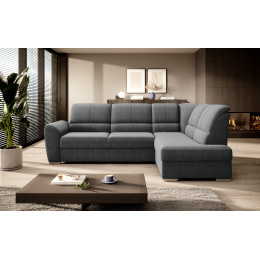 The Siber corner settee is a perfect solution for the people who value order and organisation. It helps to save space thanks to the large bedding container. Its high profiled adjustable backrests, decorated with stylish stitching, will make even hours of relaxation with your favourite TV series a convenient and comfortable experience. Dimensions of the corner settee: 270 x 186 x 93 cm, allowing for a peaceful rest for a larger number of people without the need to add more lounge furniture. In addition, the corner settee can become an additional bed, thanks to the folding sleeping function with the area of 205 x 125 cm. The dolphin folding mechanism used in this piece of furniture is a great and simple way to turn the corner settee into a full-size bed. Also worth mentioning are the adjustable backrests, which can help you relax comfortably while reading a book or watching TV. Interesting elements of this piece of furniture are its 5 cm high wooden legs, as well as the seat filled with T30 foam providing excellent elasticity and high density.