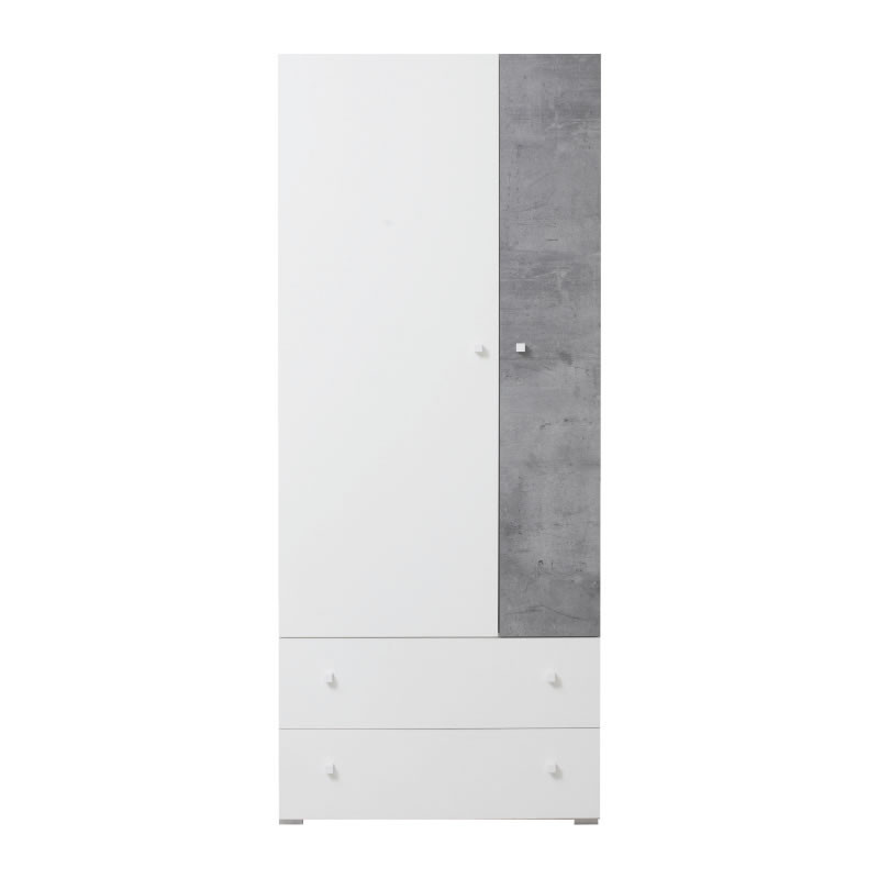 A SIGMA rendszer ruhásszekrénye két színváltozatban készül: Beton+Fehér Lux+Tölgy és Fehér Lux+Beton.