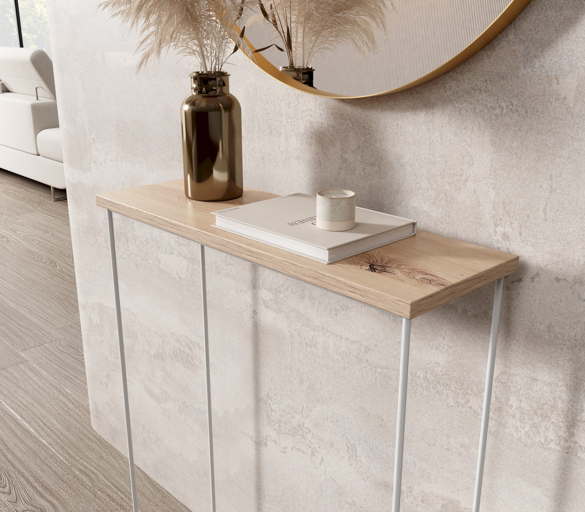 A Sili konzol asztal drót lábbal nagyszerű kiegészítője bármely belső térnek. Univerzális kialakítása biztosítja, hogy illeszkedjen mind a modern, mind a klasszikusabb elrendezésekhez. Szolgálhat praktikus térként az előszobában, elegáns kiegészítőként a nappaliban vagy stílusos munkahelyként az irodában.