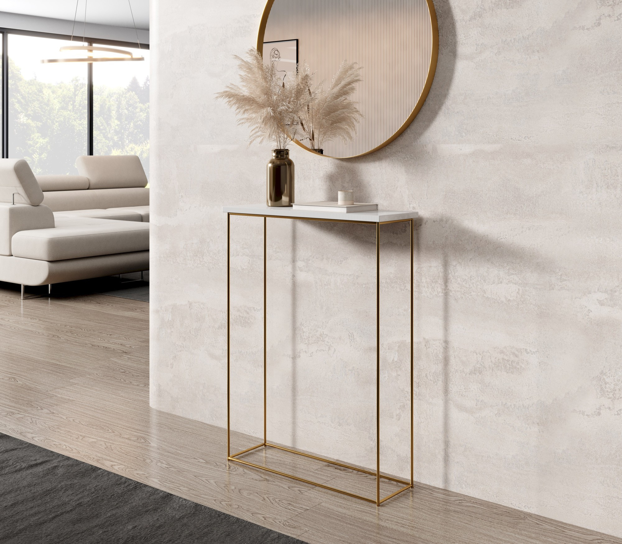 A Sili konzol asztal drót lábbal nagyszerű kiegészítője bármely belső térnek. Univerzális kialakítása biztosítja, hogy illeszkedjen mind a modern, mind a klasszikusabb elrendezésekhez. Szolgálhat praktikus térként az előszobában, elegáns kiegészítőként a nappaliban vagy stílusos munkahelyként az irodában.