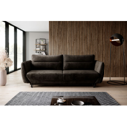 Silva sofa is a combination of simple, yet unconventional form and high quality materials. Designed for those who love comfort and elegance. This simple, yet elegant piece of furniture is a good choice not only for the living room, but also for office spaces or hotels.Particularly noteworthy in the design of the sofa are the modern black steel long legs. Thanks to them and the ability to choose the color of the fabric, the furniture easily fits into many arrangements. In addition to its aesthetic qualities, Silva can also boast functionality, thanks to its capacious bedding storage. The furniture's interesting design is also a good solution for minimalist interiors, as its dimensions are: 236 x 95 x 90 centimeters. Silva is equipped with a comfortable backrest in the form of cushions with T25 foam filling, combined with seat cushions with HR high elastic foam. In addition, the sofa has a sleeping function on a surface of 200 x 145 centimeters and a DL automatic to help unfold the furniture.