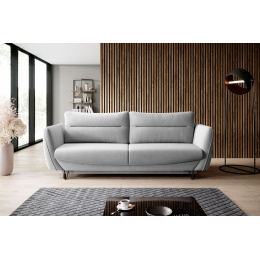 Silva sofa is a combination of simple, yet unconventional form and high quality materials. Designed for those who love comfort and elegance. This simple, yet elegant piece of furniture is a good choice not only for the living room, but also for office spaces or hotels.Particularly noteworthy in the design of the sofa are the modern black steel long legs. Thanks to them and the ability to choose the color of the fabric, the furniture easily fits into many arrangements. In addition to its aesthetic qualities, Silva can also boast functionality, thanks to its capacious bedding storage. The furniture's interesting design is also a good solution for minimalist interiors, as its dimensions are: 236 x 95 x 90 centimeters. Silva is equipped with a comfortable backrest in the form of cushions with T25 foam filling, combined with seat cushions with HR high elastic foam. In addition, the sofa has a sleeping function on a surface of 200 x 145 centimeters and a DL automatic to help unfold the furniture.