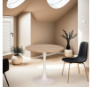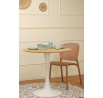 A Simplet Skinny asztal a fa asztallappal rendelkező sorozatból a még mindig élő, egylábú asztal projekt legújabb verziója. Az asztal trombita alakú, porfestett fém lábbal gyakori választás a tervezők körében, és nem véletlenül. Egy központilag az asztallap alá helyezett láb univerzális megoldás. Az ilyen asztalszerkezetnek köszönhetően a székeket tetszőlegesen elhelyezhetjük körülötte anélkül, hogy figyelembe kellene vennünk az asztal lábait. Innovatív, ugyanakkor illeszkedik a jelenlegi trendekhez. A fa hatású furnérral díszített deszka jól beválik a természetes belső térben, ahol a boho stílus és a természet színei uralkodnak. Az ilyen anyag használatának köszönhetően az asztal karcálló, és ami a legfontosabb, könnyen tisztítható. Csomag méretei: 1) 94x94x5cm, 2) 54x52x9cm, 3) 6618x16cm. Kartondobozok súlya: 11kg, 4kg, 2kg. Az alap átmérője 49,5 cm