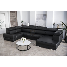 NAROŻNIK SKÓRZANY ROYAL MAX I Z FUNCKJĄ SPANIA 210x375x185 Przedstawiamy luksusowy narożnik skórzany Royal Max I, wykonany z najwyższej jakości skóry naturalnej, który nie tylko doskonale komponuje się z nowoczesnym designem, ale także zapewnia niezrównany komfort. Niskie nóżki nadają mu elegancki wygląd, podkreślając jego wyjątkowy charakter. Regulowane zagłówki to nie tylko estetyczny dodatek, ale również praktyczne rozwiązanie, które umożliwia dostosowanie pozycji siedzenia do indywidualnych preferencji. Narożnik Royal Max I posiada również funkcję spania, co sprawia, że staje się idealnym miejscem do relaksu, a jednocześnie praktycznym meblem do spania dla gości. Dodatkowym atutem tego narożnika są wbudowane pojemniki na pościel, co sprawia, że przechowywanie i utrzymanie porządku w salonie staje się łatwiejsze niż kiedykolwiek wcześniej. To doskonałe rozwiązanie dla tych, którzy cenią sobie funkcjonalność i estetykę w jednym. Zainwestuj w wyjątkowy narożnik Royal Max I, który nie tylko spełni Twoje oczekiwania pod względem designu, ale także zapewni wygodę i praktyczność na najwyższym poziomie. Sprawdź naszą ofertę już teraz! Ich unikatowy design i precyzja wykonania przyniosą Ci odrobinę luksusu, niebywały komfort i fenomenalny wygląd pomieszczenia. Świetnie sprawdzą się zarówno w salonie, sypialni, biurze, gabinecie jak i w innych pomieszczeniach. Połączenie jakości, funkcjonalności i piękna. WYKONANIE Narożnik w kształcie litery U i jego wszystkie elementy produktu zostały obszyte grubym szwem, co stanowi ozdobę i wzmacnia połączenia tkanin. Siedziska zbudowaliśmy na sprężynach falistych oraz piance wysoko elastycznej (połączenie najlepszych jakościowo pianek T35 i HR), co sprawiło, że są one średnio miękkie a jednocześnie bardzo wytrzymałe. Stelaże wykonujemy z drewna i płyty meblowej, dlatego nasze meble są solidnie wykonane, a cena idzie zawsze w parze z jakością. Przed dodaniem produktu do koszyka prosimy o wybór strony narożnika, rodzaju preferowanych nóżek oraz koloru skóry naturalnej. Jeśli nie jesteś pewien, którą skórę wybrać, nie przejmuj się. Na prośbę klienta udostępniamy próbniki skór. Wystarczy skontaktować się z naszym biurem obsługi klienta aby uzyskać szczegóły lub skontaktować się z nami drogą email. W ciągu kilku dni roboczych (po wskazaniu adresu doręczenia) otrzymasz od nas próbniki. Wzornik skór naturalnych: Madras jednokolorowy półmat, symbol K Madras antykowany połysk, cieniowana, symbole A, C, S Federica pół-połysk, symbol G Skóry mogą wykazywać delikatne różnice w kolorystyce, strukturze powierzchni i mogą posiadać drobne blizny. Wynika to z naturalnego środowiska, w którym żyły zwierzęta i nadaje skórze jak i meblom indywidualny charakterystyczny wygląd. Cechy te absolutnie nie mają wpływu na trwałość użytkową mebli a wręcz przeciwnie. Takie i podobne zaniki nie są wadą, a jedynie potwierdzeniem autentyczności naturalnej skóry. Prosimy o przemyślane zakupy. Meble ze skóry naturalnej są wykonywane na zamówienie indywidualne i nie podlegają zwrotowi. Mebel z funkcją rozkładania do spania okazjonalnego. Do spania codziennego rekomendujemy sofy typu DL. Funkcja spania wykonywana jest w tkaninie zastępczej.