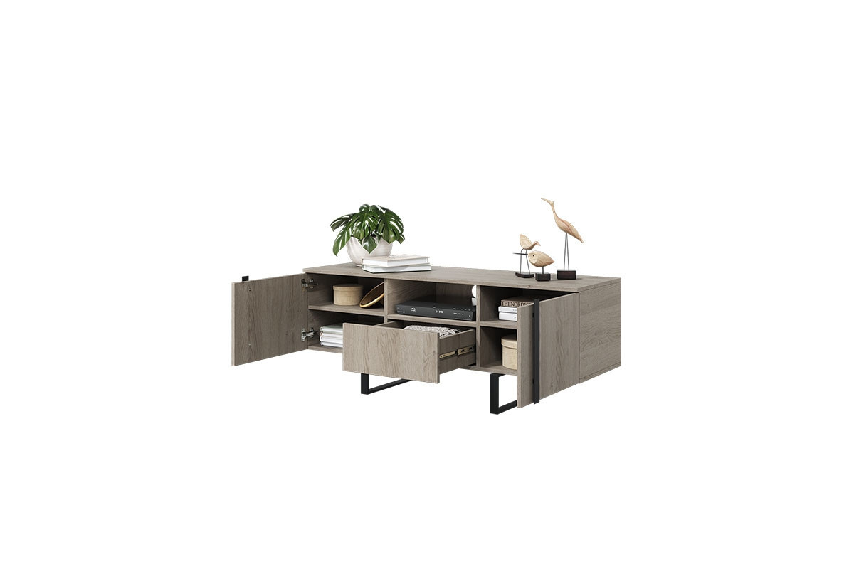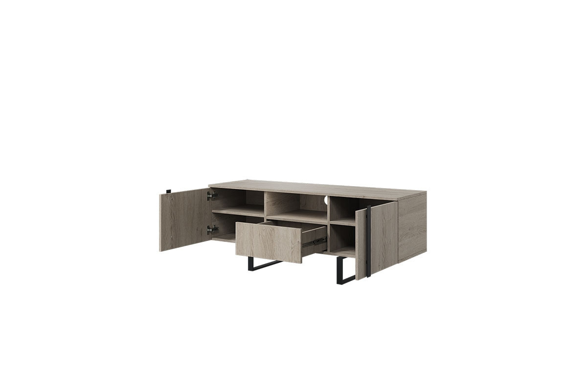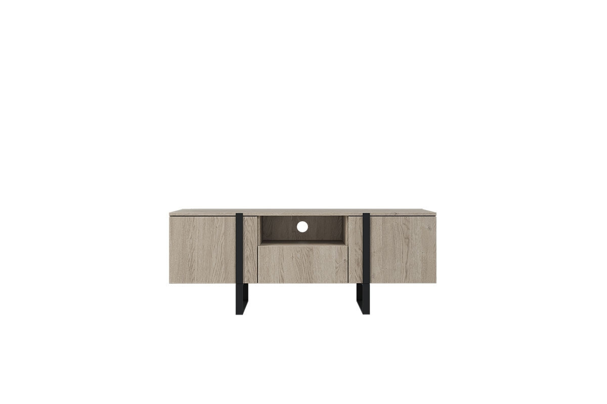 Skříňka RTV Verica 150 cm s výklenkem - dub biskvitový / černé nožky