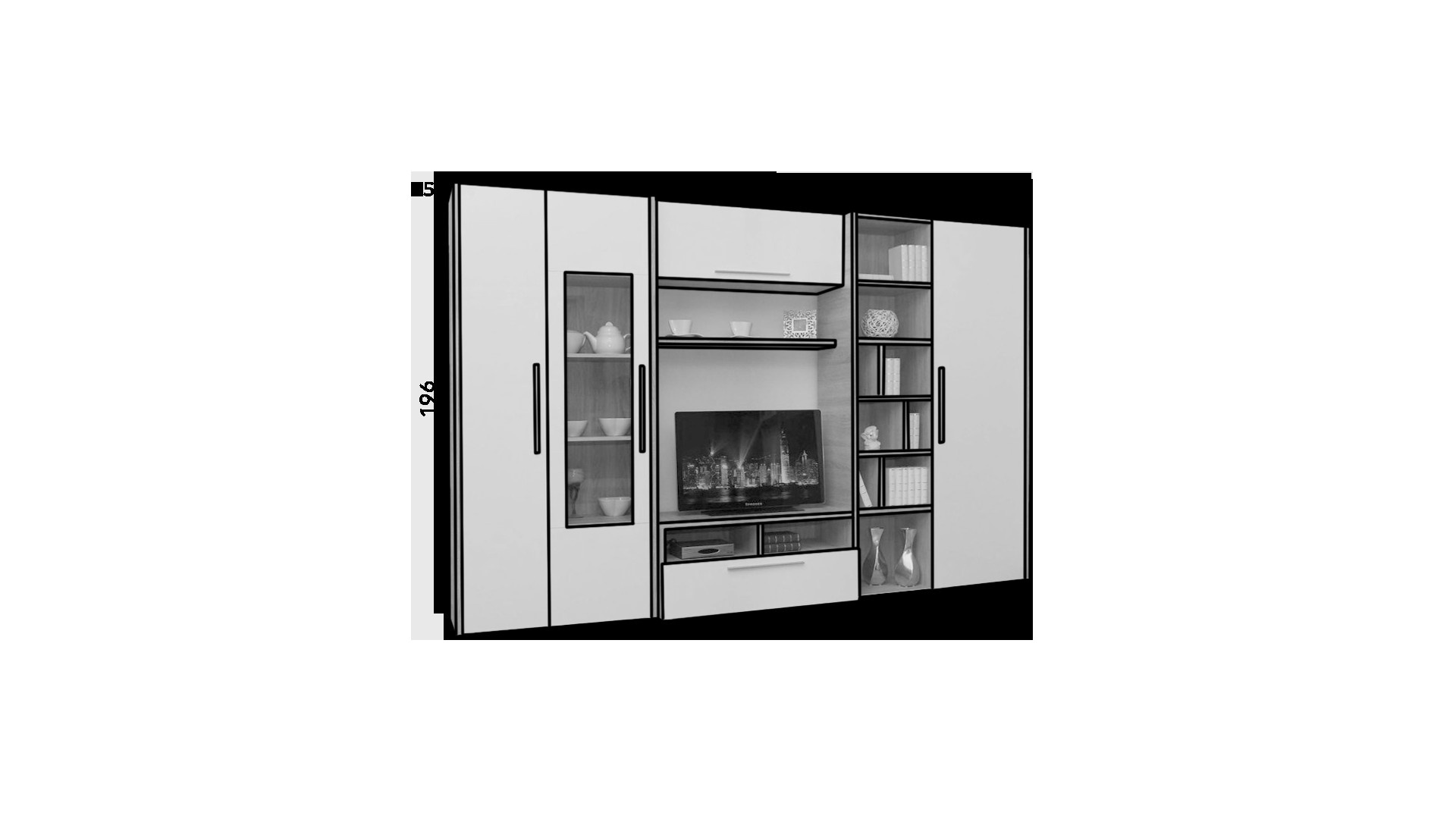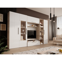 A SMERA nappali fal rendkívül funkcionális bútordarab. A nappali fal részét képezi két szekrény, egy praktikus polc, amelyre elhelyezheti kedvenc könyveit vagy közeli hozzátartozói fényképeit, egy tágas vitrin, egy TV szekrény és egy fali polc. A SMERA nappali falnak csomagolt szekrényei és tágas polcai vannak, ami ideális helyet biztosít a kisebb tárgyak elrendezéséhez.