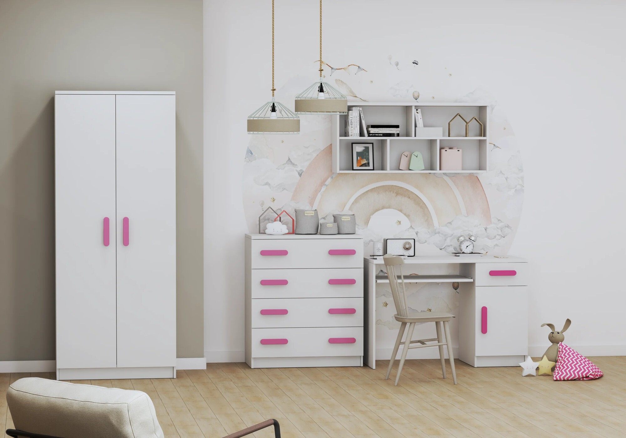 SMYK I - 22 éjjeliszekrény, Fehér Matt/Rózsaszín