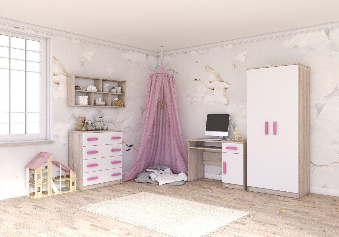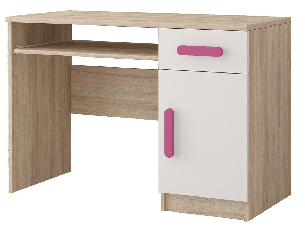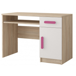 SMYK III - 08 íróasztal, Sonoma Tölgy/Fehér/Rózsaszín