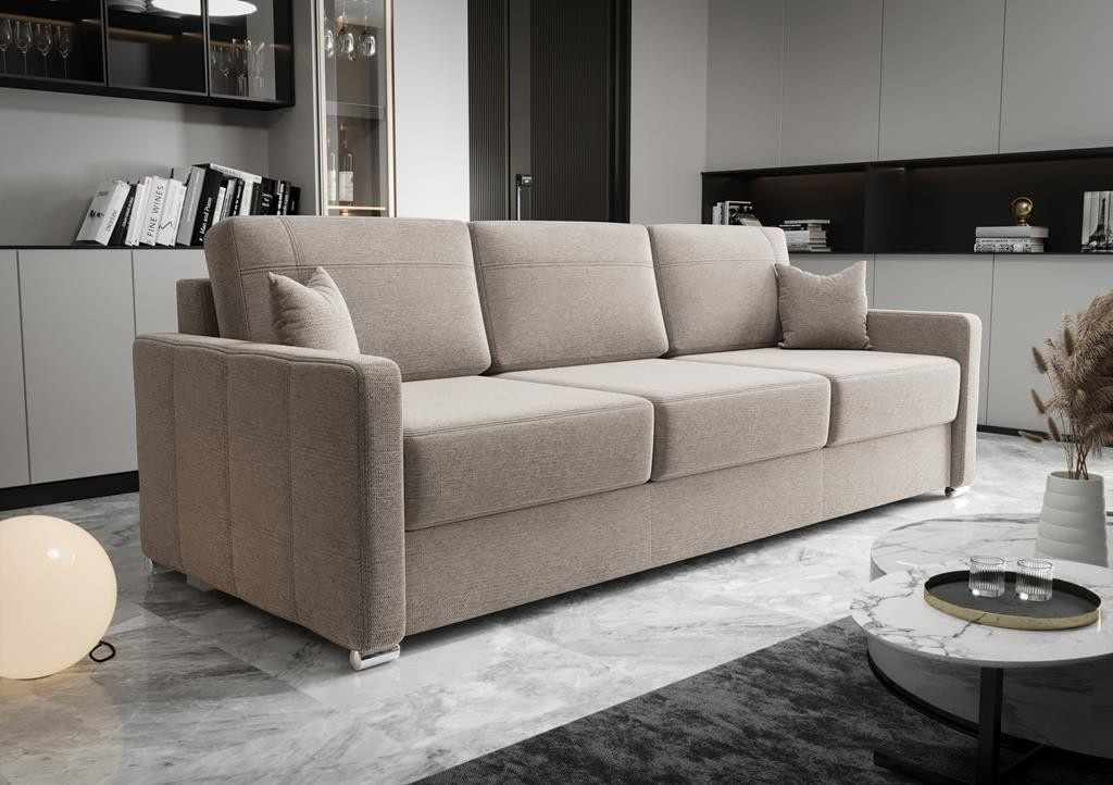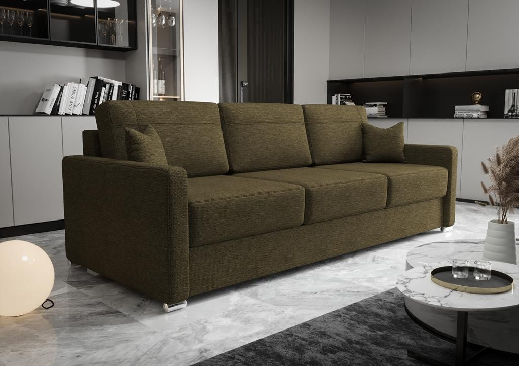 SOFA AVANTI DL 230cm Sofa Avanti DL to połączenie klasyki z komfortem, który gwarantują profilowane siedzisko i oparcie z wygodną poduszką. Kolekcję cechują klasyczne przeszycia na boku, nadające meblom swoistego wdzięku. Komfortowe dwustrefowe siedziska i miękkie poduszki zapewniają niezwykłą wygodę podczas wypoczynku. Szukasz zgrabnej i funkcjonalnej sofy? Sofa Avanti DL to doskonały wybór. Sprawdź pozostałe sofy rozkładane. Zalety mebla: Poduszki pełniące funkcję oparcia z odpinanymi pokrowcami łatwymi do czyszczenia Funkcję spania rozkładaną na automacie - łatwo zmienisz fotel w łóżko dla gości Pojemnik na pościel wykonany w całości z płyty laminowanej - dodatkowe miejsce do przechowywania Ozdobne przeszycia - wykonane estetycznie z dbałością o najdrobniejszy szczegół Trzy wersje nóg do wyboru: metalowe wałki, drewniane buk lub drewniane ciemny orzech. Wykonanie: Wszystkie elementy zostały obszyte grubym szwem, co stanowi ozdobę i wzmacnia połączenia tkanin. Dzięki zastosowaniu w siedzisku pianki T35 o dużej gęstości otrzymaliśmy zwiększoną wytrzymałość na odkształcenia. Twardość siedzenia w naszych sofach typu amerykanka określamy jako średnio-twarde. Stelaże wszystkich naszych mebli są wykonane z drewna i płyty meblowej. Siedziska i elementy silnie obciążone są zbudowane na ramach drewnianych co wzmacnia ich konstrukcję. Tkaniny: Dzięki szerokiemu wyborowi tkanin, możesz spersonalizować swoją sofę . Sam decydujesz, czy mebel zostanie wykonamy dla Ciebie z weluru, skóry ekologicznej czy tkaniny szenilowej? Zadbaliśmy o to, aby materiały w naszej ofercie były starannie wyselekcjonowane i spełniały Twoje oczekiwania. W naszej ofercie znajdziesz jedynie najlepszej jakości tkaniny, które pokryte są specjalnymi powłokami, które chronią je przed rozlanymi płynami, są łatwo czyszczące lub przyjazne zwierzętom. Każdy znajdzie coś dla siebie. Wirtualna galeria Już teraz możesz obejrzeć nasze realizacje bez wychodzenia z domu, ponieważ udostępniliśmy dla Ciebie GALERIĘ. Możesz również śledzić nas na FACEBOOK. Dostępne tkaniny G pokryta jest specjalną warstwą ochronną, tworząca hydrofobową powłokę zabezpieczającą przed szybkim przesiąkaniem płynów. Zapobiega to natychmiastowemu absorbowaniu wody przez tkaninę, sprawiając że ciecz skrapla się na powierzchni materiału. Dzięki temu mamy czas na to, aby przy użyciu miękkiej ściereczki bądź ręcznika papierowego, delikatnie odsączyć rozlaną ciecz. Dopuszcza się występowanie różnic pomiędzy poszczególnymi partiami materiałów. Gramatura m2: 370 g/m2+/- 5% Skład: 100% Polyester Test Martindale: Yarn breakage: 60 000 Przesuwalność nitek: 2,3 mm WARP 2 mm WEFT Skłonność do mechacenia i peelingu: 4-5 Odporność na tarcie suche: 5 Odporność na tarcie mokre: 4-5 MT wyprodukowana została z wysokiej jakości poliuretanu, dlatego też w dotyku rewelacyjnie imituje drogie skóry naturalne. Lico materiału MT ma delikatne matowe ziarno i może być zginane czy nawet rozciągane. Nie spowoduje to żadnych trwałych zmarszczek na tkaninie. Dopuszcza się występowanie różnic pomiędzy poszczególnymi partiami materiałów. Gramatura m2: 400 g/m2+/- 10% Skład: Surface: 100% PU | Base fabric: 75% PES 25% CO (+/-10%) Test Martindale: Yarn breakage: 102 400 Odporność na tarcie suche: 5 Odporność na tarcie mokre: 5 MY to nasza odpowiedź na bardzo modne ostatnio tkaniny szenilowe. Pokryta jest specjalną warstwą ochronną, tworząca hydrofobową powłokę zabezpieczającą przed szybkim przesiąkaniem płynów. Zapobiega to natychmiastowemu absorbowaniu wody przez tkaninę, sprawiając że ciecz skrapla się na powierzchni materiału. Dzięki temu mamy czas na to, aby przy użyciu miękkiej ściereczki bądź ręcznika papierowego, delikatnie odsączyć rozlaną ciecz. Dopuszcza się występowanie różnic pomiędzy poszczególnymi partiami materiałów. Gramatura m2: 380 g/m2+/- 5% Skład: 100% Polyester Test Martindale: Yarn breakage: 75 000-85 000 Przesuwalność nitek: 2,1-2,5 mm WARP 1,4-1,6 mm WEFT Skłonność do mechacenia i peelingu: 4-5 Odporność na tarcie suche: 4-5 Odporność na tarcie mokre: 4-5 Plecionka Pol ma w swojej palecie wiele ciekawych kolorów. Wysoka odporności na piling i tarcie podwyższa jakość tej tkaniny. Bardzo dobra odporność wybarwień na działanie światła sprawia, że materiał zachowuje oryginalną intensywność kolorów. Materiał spełnia też wyśrubowane wymagania standardu REACH, co potwierdza jego bezpieczeństwo i wysoką jakość. Gramatura: 380 g/m2 +/- 2% Skład: 90% polyester, 5% nylon, 5% rayon Test Martindale: 60 000 Pilingi: 4-5 Odporność na tarcie: na sucho 5 / na mokro 4-5 Odporność koloru na światło: 5 R.E.A.C.H. Standard: Tak P pokryta jest specjalną warstwą ochronną, tworząca hydrofobową powłokę zabezpieczającą przed szybkim przesiąkaniem płynów. Zapobiega to natychmiastowemu absorbowaniu wody przez tkaninę, sprawiając że ciecz skrapla się na powierzchni materiału. Dzięki temu mamy czas na to, aby przy użyciu miękkiej ściereczki bądź ręcznika papierowego, delikatnie odsączyć rozlaną ciecz. Dopuszcza się występowanie różnic pomiędzy poszczególnymi partiami materiałów. Gramatura m2: 370 g/m2+/- 5% Skład: 100% Polyester Test Martindale: Yarn breakage: 60 000 Przesuwalność nitek: 2,3 mm WARP 2 mm WEFT Skłonność do mechacenia i peelingu: 4-5 Odporność na tarcie suche: 5 Odporność na tarcie mokre: 4-5 RV to tkanina, która zachwyca swoim wyglądem i właściwościami. Ten miły w dotyku materiał charakteryzuje się bardzo wysoką odpornością na ścieranie. W teście Martindale uzyskał wynik na poziomie aż 105 000 suwów. Sprawdzi się także w mocno oświetlonych pomieszczeniach, gdyż wykazuje zwiększoną odporność na płowienie. W zależności od kąta padania światła tkanina nabiera ciemniejs