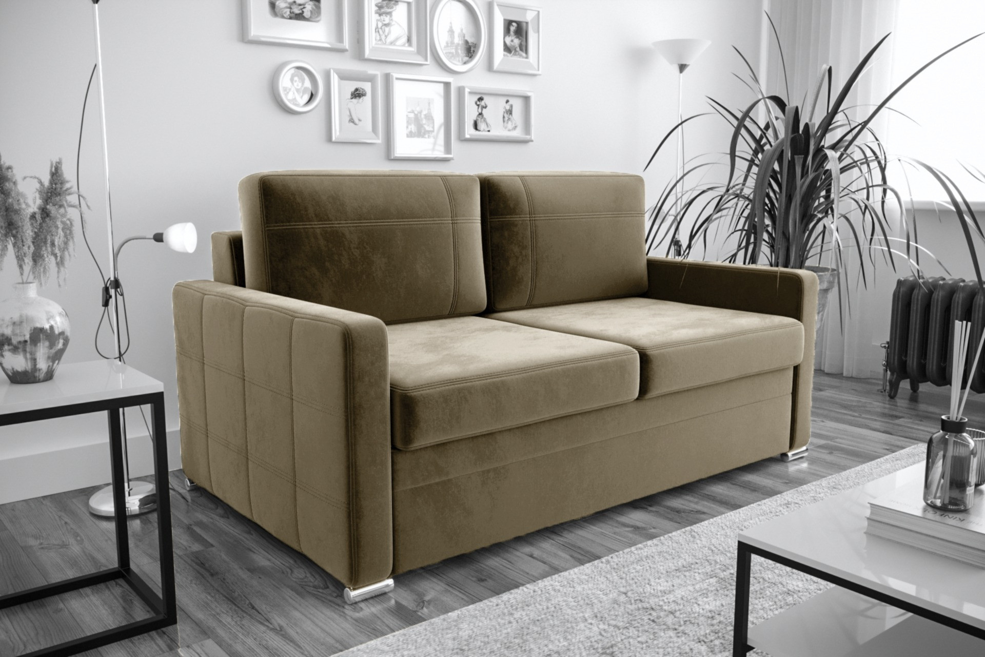 Sofa Avanti III 167 cm to popularny wybór dla osób poszukujących funkcjonalnych i stylowych rozwiązań do swoich wnętrz. Sofa Avanti III posiada mechanizm rozkładania, który umożliwia szybkie i łatwe przekształcenie jej w łóżko. To idealne rozwiązanie do małych mieszkań, pokoi gościnnych lub salonów. Kanapa Avanti III to połączenie klasyki z komfortem, który gwarantują profilowane siedzisko i oparcie z wygodną poduszką. Kolekcję cechują klasyczne przeszycia na boku, nadające meblom swoistego wdzięku. Komfortowe dwustrefowe siedziska i miękkie poduszki zapewniają niezwykłą wygodę podczas wypoczynku. Szukasz małej, zgrabnej i funkcjonalnej sofy? Sofa Avanti III to doskonały wybór. Poznaj pozostałe sofy amerykanki. Sofa posiada poduszki pełniące funkcję oparcia z odpinanymi pokrowcami łatwymi do czyszczenia. Funkcja spania rozkładana na automacie dlatego łatwo zmienisz fotel w łóżko dla gości. Wbudowany pojemnik na pościel wykonany w całości z płyty laminowanej - służy doskonale jako dodatkowe miejsce do przechowywania Kanapa charakteryzuje się małym rozmiarem, dlatego idealnie sprawdzi się w pomieszczeniach o niewielkim metrażu. W tym modelu mamy trzy wersje nóg do wyboru: metalowe wałki, drewniane buk lub drewniane ciemny orzech. Sofa Avanti III 167 cm Stelaże wszystkich naszych mebli powstają z drewna i płyty meblowej. Siedziska i elementy silnie obciążone są zbudowane na ramach drewnianych, co wzmacnia ich konstrukcję. Sofa wykonana w tkaninie Bronx Taupe. Wirtualna galeria Już teraz możesz obejrzeć nasze realizacje bez wychodzenia z domu, ponieważ udostępniliśmy dla Ciebie GALERIĘ. Miłego oglądania! Mebel z funkcją rozkładania do spania okazjonalnego. Do spania codziennego rekomendujemy sofy typu DL. Funkcja spania wykonywana jest w tkaninie zastępczej.