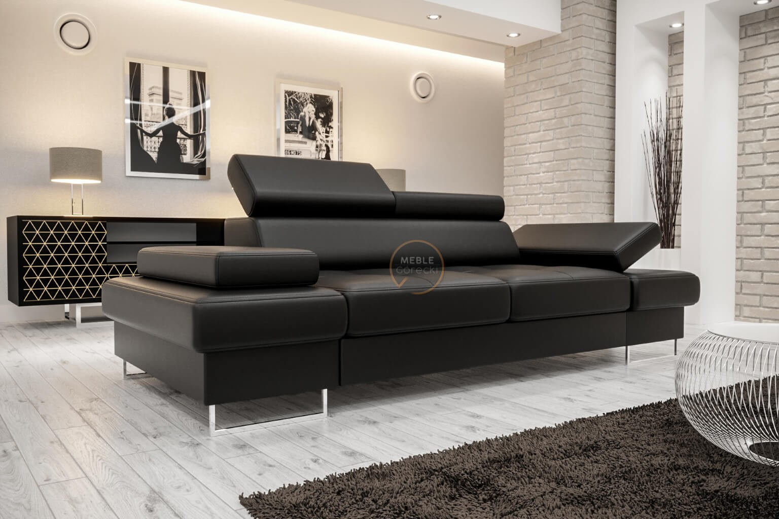 SOFA GALAXY II 235 CM - Czarna eko skóra