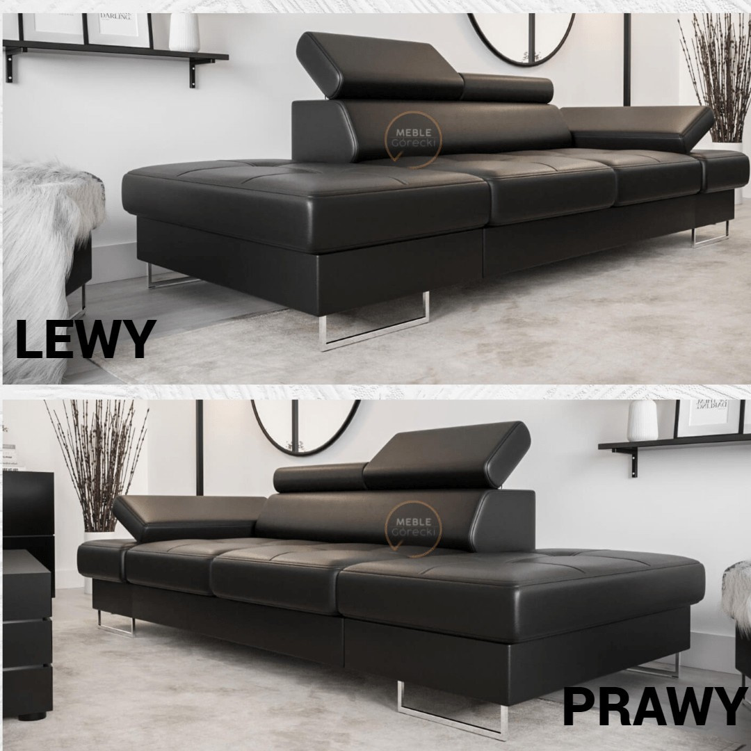 SOFA GALAXY II SZEZLONG 235 CM - Czarna eko skóra , Szezlong po lewej - lewa strona