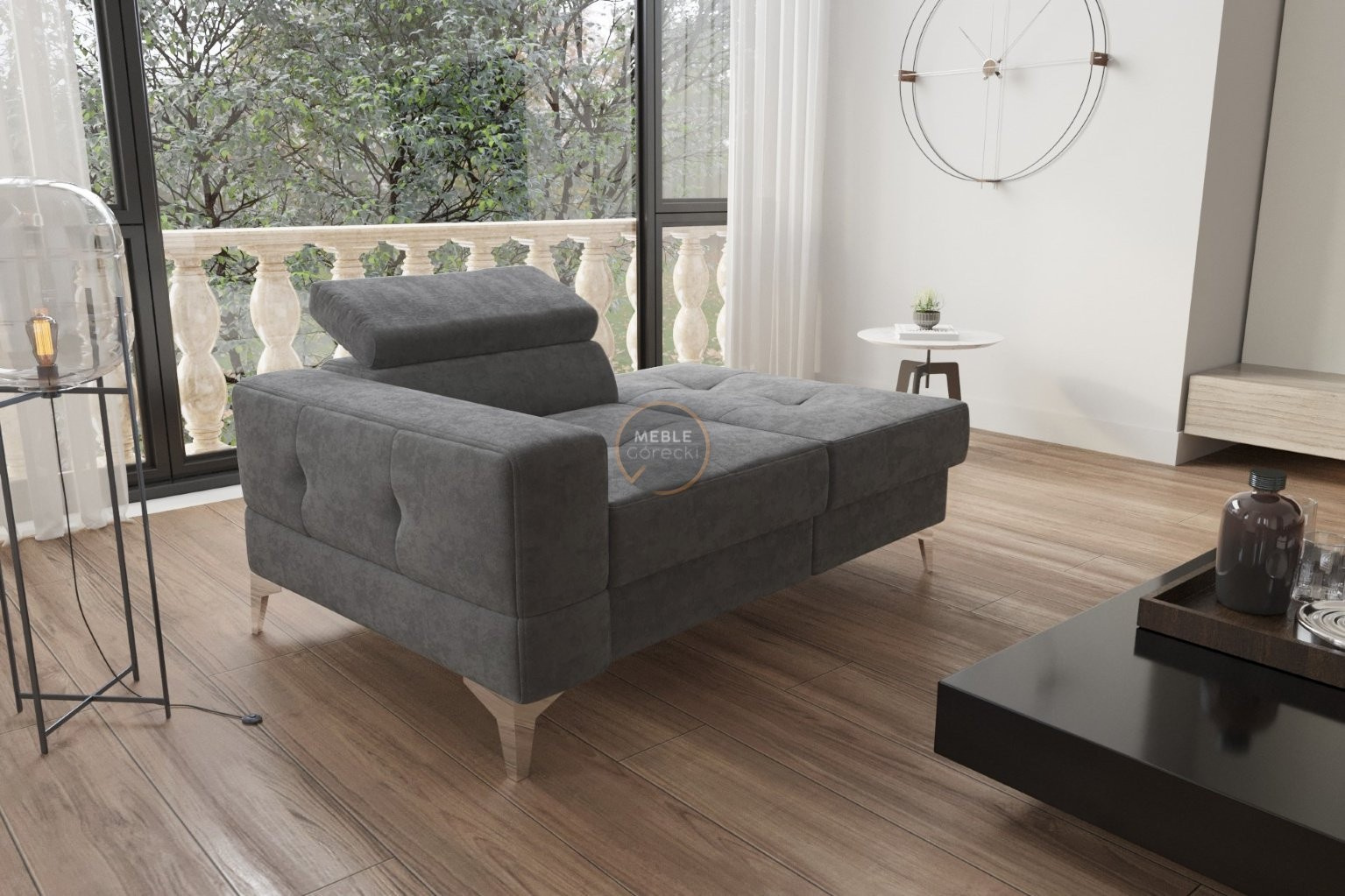SOFA JEDNOOSOBOWA TOSCANIA I SZEZLONG 135 CM - Odcienie grafitu , Szezlong po prawej - prawa strona