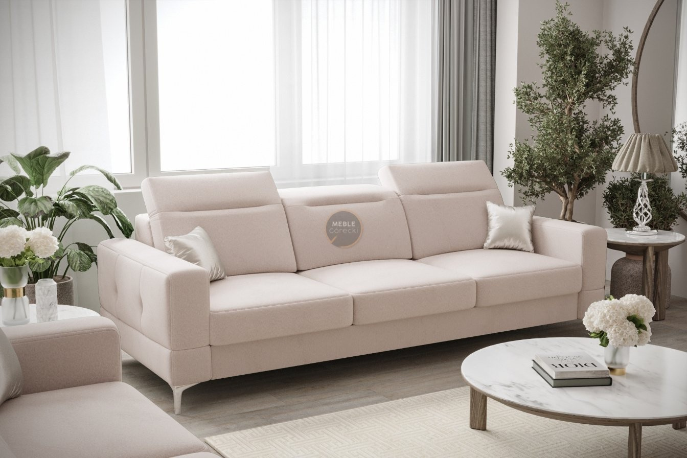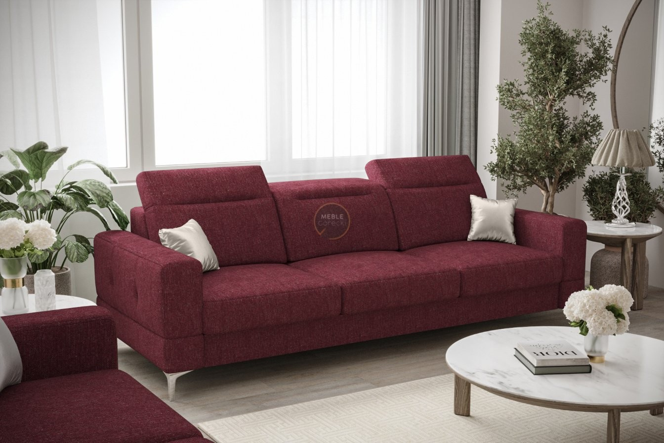 SOFA MALIBU III 245 CM Sofa Malibu III to kolejny element kolekcji mebli Malibu, którą stworzyliśmy z niezwykłą starannością i dbałością o najdrobniejszy szczegół. Klasyczny styl podkreśliliśmy nowoczesnymi detalami w postaci wysokich na 13 cm metalowymi nóżkami oraz delikatnym, pikowanym boczkiem. Dzięki wysokiemu oparciu i regulowanym zagłówkom sofa zyskuje na funkcjonalności. Całość sprawia, że mebel prezentuje się niezwykle elegancko i spełnia wymagania nawet najbardziej wymagających klientów. WYKONANIE Wszystkie elementy produktu sofa Malibu III zostały obszyte grubym szwem, co stanowi ozdobę i wzmacnia połączenia tkanin. Siedziska zbudowaliśmy na sprężynach falistych oraz piance wysoko elastycznej (T35 i HR), co sprawiło, że są one średnio miękkie a jednocześnie bardzo wytrzymałe. Stelaże wykonujemy z drewna i płyty meblowej, dlatego nasze meble są solidnie wykonane, a cena idzie zawsze w parze z jakością. TKANINY Dzięki szerokiemu wyborowi tkanin, możesz spersonalizować swoją sofę. Sam decydujesz, czy mebel zostanie wykonamy dla Ciebie z weluru, tkaniny szenilowej, skóry ekologicznej a może naturalnej? Zadbaliśmy o to, aby materiały w naszej ofercie były starannie wyselekcjonowane i spełniały Twoje oczekiwania. W naszej ofercie znajdziesz jedynie najlepszej jakości tkaniny, które pokryte są specjalnymi powłokami, które chronią je przed rozlanymi płynami, są łatwo czyszczące lub przyjazne zwierzętom. Każdy znajdzie coś dla siebie. Szukasz mebla w ponadczasowym stylu, który będzie nie tylko atrakcyjny ale także niezwykle wygodny? Sofa Malibu II to coś dla Ciebie! WIRTUALNA GALERIA Już teraz możesz obejrzeć nasze realizacje bez wychodzenia z domu, ponieważ udostępniliśmy dla Ciebie GALERIĘ. Miłego oglądania! Dostępne tkaniny G pokryta jest specjalną warstwą ochronną, tworząca hydrofobową powłokę zabezpieczającą przed szybkim przesiąkaniem płynów. Zapobiega to natychmiastowemu absorbowaniu wody przez tkaninę, sprawiając że ciecz skrapla się na powierzchni materiału. Dzięki temu mamy czas na to, aby przy użyciu miękkiej ściereczki bądź ręcznika papierowego, delikatnie odsączyć rozlaną ciecz. Dopuszcza się występowanie różnic pomiędzy poszczególnymi partiami materiałów. Gramatura m2: 370 g/m2+/- 5% Skład: 100% Polyester Test Martindale: Yarn breakage: 60 000 Przesuwalność nitek: 2,3 mm WARP 2 mm WEFT Skłonność do mechacenia i peelingu: 4-5 Odporność na tarcie suche: 5 Odporność na tarcie mokre: 4-5 MT wyprodukowana została z wysokiej jakości poliuretanu, dlatego też w dotyku rewelacyjnie imituje drogie skóry naturalne. Lico materiału MT ma delikatne matowe ziarno i może być zginane czy nawet rozciągane. Nie spowoduje to żadnych trwałych zmarszczek na tkaninie. Dopuszcza się występowanie różnic pomiędzy poszczególnymi partiami materiałów. Gramatura m2: 400 g/m2+/- 10% Skład: Surface: 100% PU | Base fabric: 75% PES 25% CO (+/-10%) Test Martindale: Yarn breakage: 102 400 Odporność na tarcie suche: 5 Odporność na tarcie mokre: 5 MY to nasza odpowiedź na bardzo modne ostatnio tkaniny szenilowe. Pokryta jest specjalną warstwą ochronną, tworząca hydrofobową powłokę zabezpieczającą przed szybkim przesiąkaniem płynów. Zapobiega to natychmiastowemu absorbowaniu wody przez tkaninę, sprawiając że ciecz skrapla się na powierzchni materiału. Dzięki temu mamy czas na to, aby przy użyciu miękkiej ściereczki bądź ręcznika papierowego, delikatnie odsączyć rozlaną ciecz. Dopuszcza się występowanie różnic pomiędzy poszczególnymi partiami materiałów. Gramatura m2: 380 g/m2+/- 5% Skład: 100% Polyester Test Martindale: Yarn breakage: 75 000-85 000 Przesuwalność nitek: 2,1-2,5 mm WARP 1,4-1,6 mm WEFT Skłonność do mechacenia i peelingu: 4-5 Odporność na tarcie suche: 4-5 Odporność na tarcie mokre: 4-5 Plecionka Pol ma w swojej palecie wiele ciekawych kolorów. Wysoka odporności na piling i tarcie podwyższa jakość tej tkaniny. Bardzo dobra odporność wybarwień na działanie światła sprawia, że materiał zachowuje oryginalną intensywność kolorów. Materiał spełnia też wyśrubowane wymagania standardu REACH, co potwierdza jego bezpieczeństwo i wysoką jakość. Gramatura: 380 g/m2 +/- 2% Skład: 90% polyester, 5% nylon, 5% rayon Test Martindale: 60 000 Pilingi: 4-5 Odporność na tarcie: na sucho 5 / na mokro 4-5 Odporność koloru na światło: 5 R.E.A.C.H. Standard: Tak P pokryta jest specjalną warstwą ochronną, tworząca hydrofobową powłokę zabezpieczającą przed szybkim przesiąkaniem płynów. Zapobiega to natychmiastowemu absorbowaniu wody przez tkaninę, sprawiając że ciecz skrapla się na powierzchni materiału. Dzięki temu mamy czas na to, aby przy użyciu miękkiej ściereczki bądź ręcznika papierowego, delikatnie odsączyć rozlaną ciecz. Dopuszcza się występowanie różnic pomiędzy poszczególnymi partiami materiałów. Gramatura m2: 370 g/m2+/- 5% Skład: 100% Polyester Test Martindale: Yarn breakage: 60 000 Przesuwalność nitek: 2,3 mm WARP 2 mm WEFT Skłonność do mechacenia i peelingu: 4-5 Odporność na tarcie suche: 5 Odporność na tarcie mokre: 4-5 RV to tkanina, która zachwyca swoim wyglądem i właściwościami. Ten miły w dotyku materiał charakteryzuje się bardzo wysoką odpornością na ścieranie. W teście Martindale uzyskał wynik na poziomie aż 105 000 suwów. Sprawdzi się także w mocno oświetlonych pomieszczeniach, gdyż wykazuje zwiększoną odporność na płowienie. W zależności od kąta padania światła tkanina nabiera ciemniejszej lub jaśniejszej tonacji. Dopuszcza się występowanie różnic pomiędzy poszczególnymi partiami materiałów. Gramatura m2: 370 g/m2+/- 5% Skład: 100% Polyester Rodzaj: Velvet Test Martindale: Yarn breakage: >105 000 Przesunięcie nitki w szwie: osnowa 2/ wątek 2 Pilingi: 4-5 Odporność na tarcie suche: 5 O