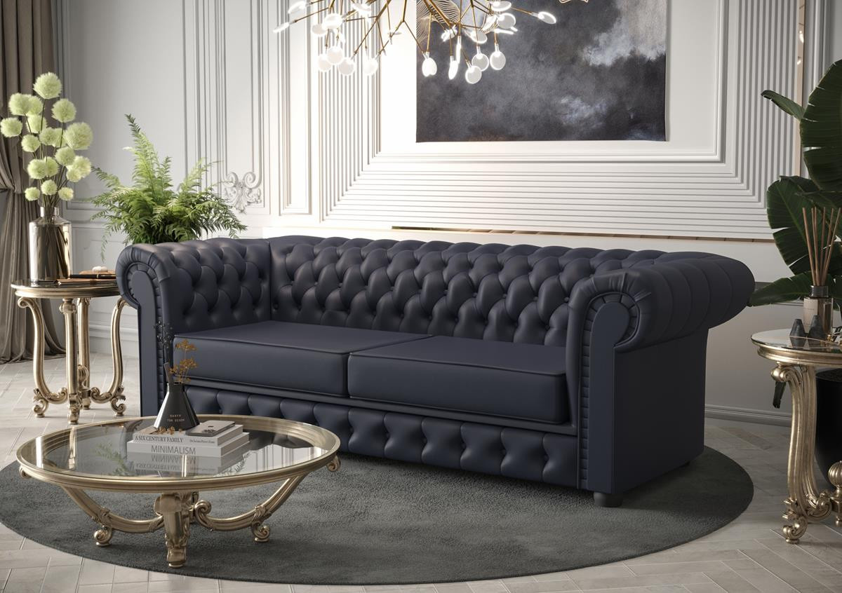 Sofa skórzana Manchester III to elegancki i klasyczny mebel, który doda luksusu każdemu wnętrzu. Co sprawia, że sofa Manchester III jest tak wyjątkowa? Przede wszystkim jej charakterystyczne cechy: głęboko pikowane oparcie, zaokrąglone podłokietniki na tej samej wysokości co oparcie oraz bogate, wysokiej jakości materiały, takie jak skóra czy welur. To wszystko składa się na mebel, który jest zarówno elegancki, jak i trwały. Sofa Manchester III czerpie swoje inspiracje z klasycznego angielskiego stylu. Jej korzenie sięgają czasów, gdy meble były synonimem luksusu i elegancji. Marka, która stoi za tym projektem, ma długą tradycję w produkcji wysokiej jakości mebli, dbając o każdy detal i używając tylko najlepszych materiałów. To właśnie te elementy sprawiają, że sofa Manchester III wyróżnia się na tle innych. Sofa Manchester III to nie tylko piękny design, ale także wyjątkowe cechy, które czynią ją niepowtarzalną. Wykonanie z najwyższej jakości materiałów, takich jak skóra czy welur, gwarantuje trwałość i komfort użytkowania. Głębokie pikowanie oparcia dodaje jej elegancji, a zaokrąglone podłokietniki zapewniają wygodę. To mebel, który łączy w sobie klasyczny styl z nowoczesnym wykonaniem. Dlaczego sofa skórzana Manchester III jest idealna do salonu? Styl i elegancja sofy Manchester III sprawiają, że jest ona doskonałym wyborem do każdego salonu. Jej uniwersalny design pozwala na dopasowanie do różnych aranżacji wnętrz – od klasycznych po nowoczesne. Sofa Manchester III stanie się centralnym punktem Twojego salonu, dodając mu klasy i wyrafinowania. Jednym z największych atutów sofy Manchester jest jej funkcja spania. Dzięki temu, że można ją łatwo rozłożyć. Stanowi to doskonałe rozwiązanie dla osób, które chcą mieć wygodne miejsce do spania w salonie lub pokoju gościnnym. Mechanizm rozkładania jest bardzo prosty i intuicyjny, dzięki czemu można go obsłużyć w kilka chwil. Sofa Manchester wyróżnia się również swoim eleganckim wyglądem. Klasyczny, minimalistyczny design sprawia, że doskonale wpasuje się w każde wnętrze, dodając mu niepowtarzalnego charakteru. Skóra naturalna dodaje sofie jeszcze więcej stylu i elegancji. Sofa ta będzie pięknie prezentować się w Twoim wnętrzu. Jeśli szukasz wyjątkowej sofy, która będzie nie tylko wygodna i funkcjonalna to sofa Manchester jest idealnym wyborem. Dzięki jej wysokiej jakości wykonaniu oraz trwałości, będziesz mógł cieszyć się nią przez wiele lat. Mebel z funkcją rozkładania do spania okazjonalnego. Do spania codziennego rekomendujemy sofy typu DL. Funkcja spania wykonywana jest w tkaninie zastępczej.