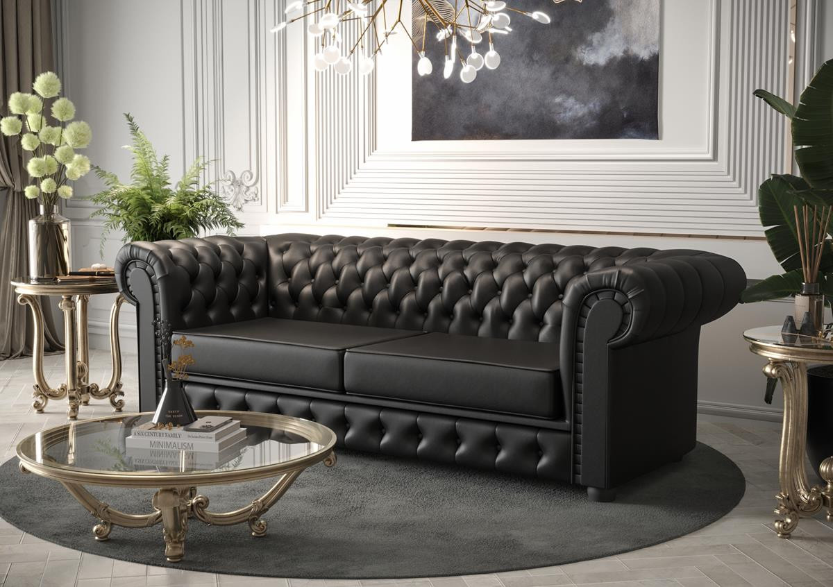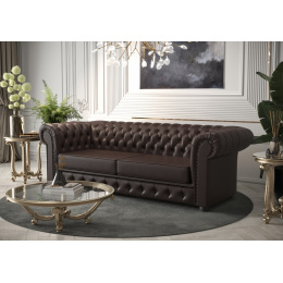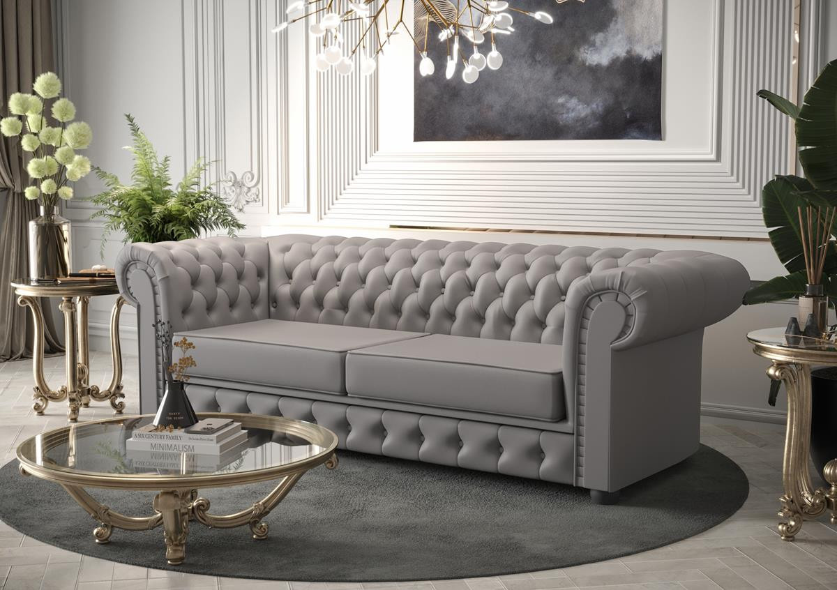 Sofa skórzana Manchester III to elegancki i klasyczny mebel, który doda luksusu każdemu wnętrzu. Co sprawia, że sofa Manchester III jest tak wyjątkowa? Przede wszystkim jej charakterystyczne cechy: głęboko pikowane oparcie, zaokrąglone podłokietniki na tej samej wysokości co oparcie oraz bogate, wysokiej jakości materiały, takie jak skóra czy welur. To wszystko składa się na mebel, który jest zarówno elegancki, jak i trwały. Sofa Manchester III czerpie swoje inspiracje z klasycznego angielskiego stylu. Jej korzenie sięgają czasów, gdy meble były synonimem luksusu i elegancji. Marka, która stoi za tym projektem, ma długą tradycję w produkcji wysokiej jakości mebli, dbając o każdy detal i używając tylko najlepszych materiałów. To właśnie te elementy sprawiają, że sofa Manchester III wyróżnia się na tle innych. Sofa Manchester III to nie tylko piękny design, ale także wyjątkowe cechy, które czynią ją niepowtarzalną. Wykonanie z najwyższej jakości materiałów, takich jak skóra czy welur, gwarantuje trwałość i komfort użytkowania. Głębokie pikowanie oparcia dodaje jej elegancji, a zaokrąglone podłokietniki zapewniają wygodę. To mebel, który łączy w sobie klasyczny styl z nowoczesnym wykonaniem. Dlaczego sofa skórzana Manchester III jest idealna do salonu? Styl i elegancja sofy Manchester III sprawiają, że jest ona doskonałym wyborem do każdego salonu. Jej uniwersalny design pozwala na dopasowanie do różnych aranżacji wnętrz – od klasycznych po nowoczesne. Sofa Manchester III stanie się centralnym punktem Twojego salonu, dodając mu klasy i wyrafinowania. Jednym z największych atutów sofy Manchester jest jej funkcja spania. Dzięki temu, że można ją łatwo rozłożyć. Stanowi to doskonałe rozwiązanie dla osób, które chcą mieć wygodne miejsce do spania w salonie lub pokoju gościnnym. Mechanizm rozkładania jest bardzo prosty i intuicyjny, dzięki czemu można go obsłużyć w kilka chwil. Sofa Manchester wyróżnia się również swoim eleganckim wyglądem. Klasyczny, minimalistyczny design sprawia, że doskonale wpasuje się w każde wnętrze, dodając mu niepowtarzalnego charakteru. Skóra naturalna dodaje sofie jeszcze więcej stylu i elegancji. Sofa ta będzie pięknie prezentować się w Twoim wnętrzu. Jeśli szukasz wyjątkowej sofy, która będzie nie tylko wygodna i funkcjonalna to sofa Manchester jest idealnym wyborem. Dzięki jej wysokiej jakości wykonaniu oraz trwałości, będziesz mógł cieszyć się nią przez wiele lat. Mebel z funkcją rozkładania do spania okazjonalnego. Do spania codziennego rekomendujemy sofy typu DL. Funkcja spania wykonywana jest w tkaninie zastępczej.