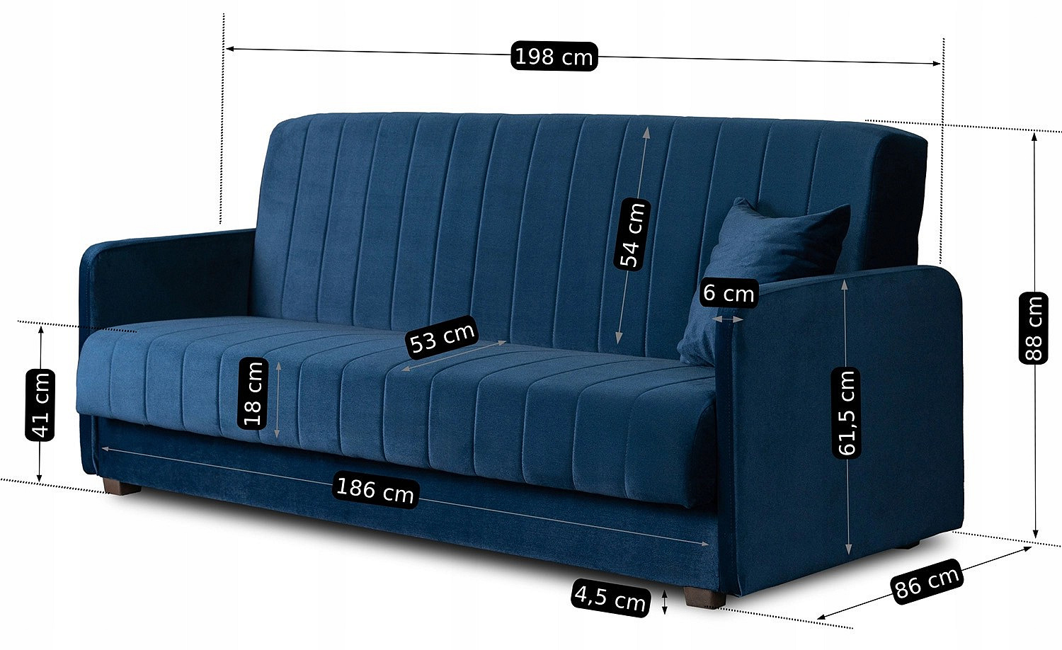 Sofa Rozkładana PORTO Granatowa Welurowa