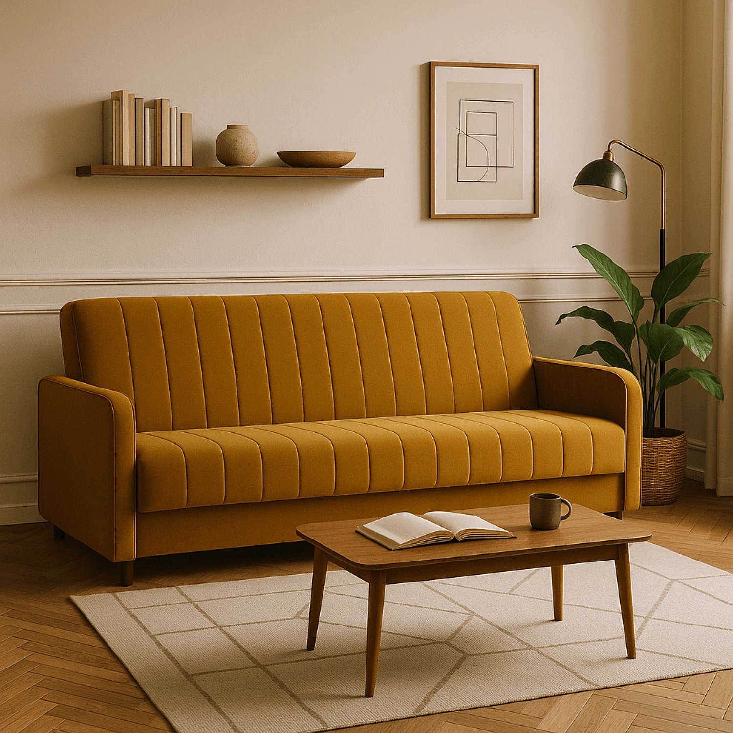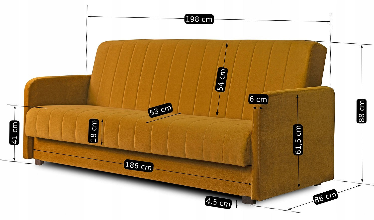 Sofa Rozkładana PORTO Musztardowa Welurowa