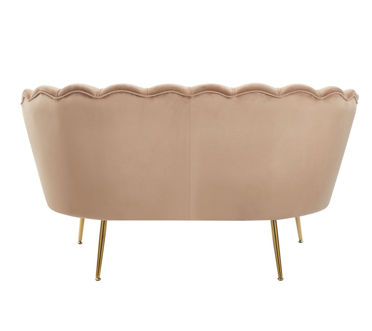 Méretek: - ülés szélessége: 106 cm - teljes szélesség: 138 cm - ülés magassága: 44 cm - teljes magasság: 79 cm - ülés mélysége: 53 cm - teljes mélység: 74 cm Anyag - kárpit: bársony - keret: krómozott fém Szín: - ülés: cappuccino - keret: arany