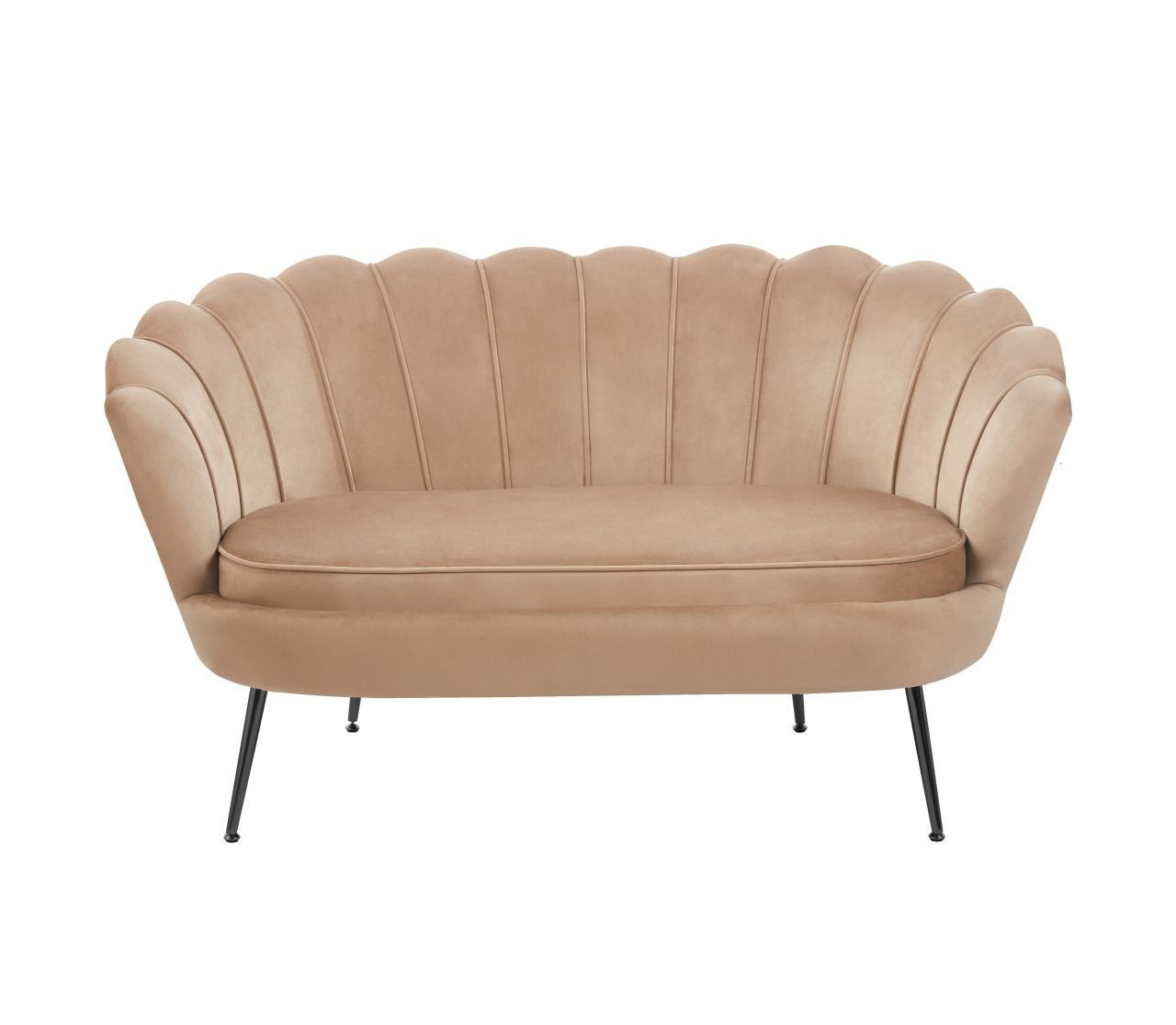 Méretek: - ülés szélessége: 106 cm - teljes szélesség: 138 cm - ülés magassága: 44 cm - teljes magasság: 79 cm - ülés mélysége: 53 cm - teljes mélység: 74 cm Anyag - kárpit: bársony - keret: porszórt festett fém Szín: - ülés: cappuccino - keret: fekete