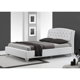 172/220/108 cm, matrac méretei: 160/200 cm, anyag: ökobőr / tömör fa, szín: fehér