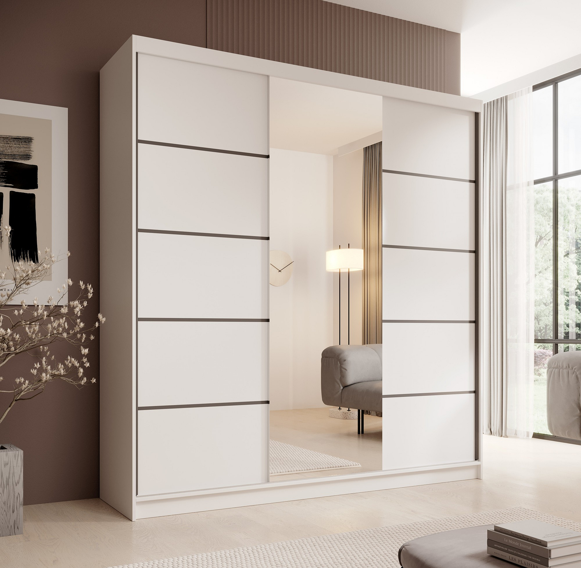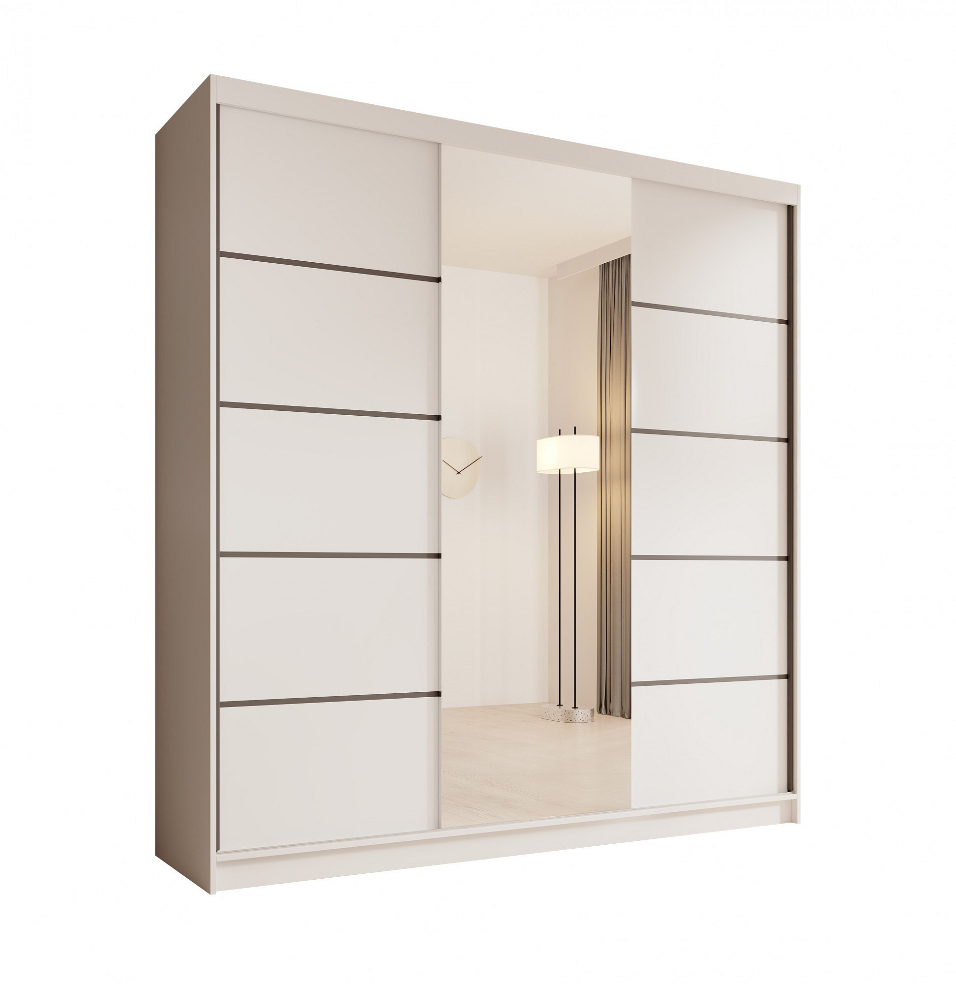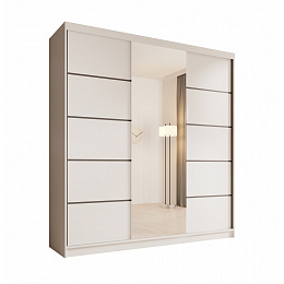 A Sonic 200 tükörrel ellátott szekrény modern és funkcionális bútor, amely ideális hálószobába, gardróbba vagy előszobába. Tolóajtókkal rendelkezik, amelyek megkönnyítik a mindennapi használatot és helyet takarítanak meg a szobában. A központilag elhelyezett nagy tükör nemcsak optikailag növeli a teret, hanem gyakorlati funkciót is betölt, megkönnyítve a mindennapi készülődést az indulásra. A Sonic szekrény ötvözik az esztétikát a praktikummal, tágas belső teret kínálnak polcokkal és ruhatartó rúddal, így kiváló választást jelentenek a modern belső terek számára.