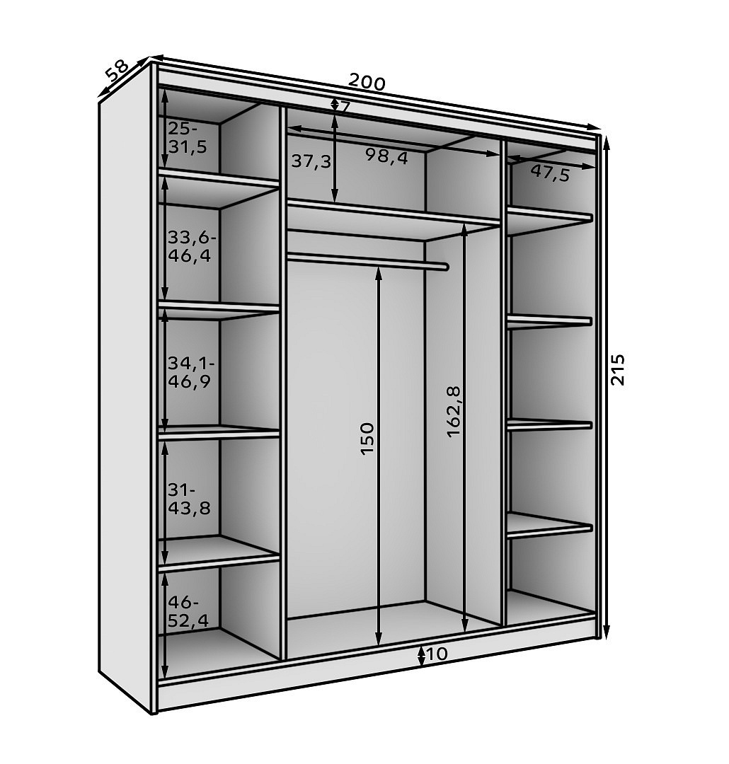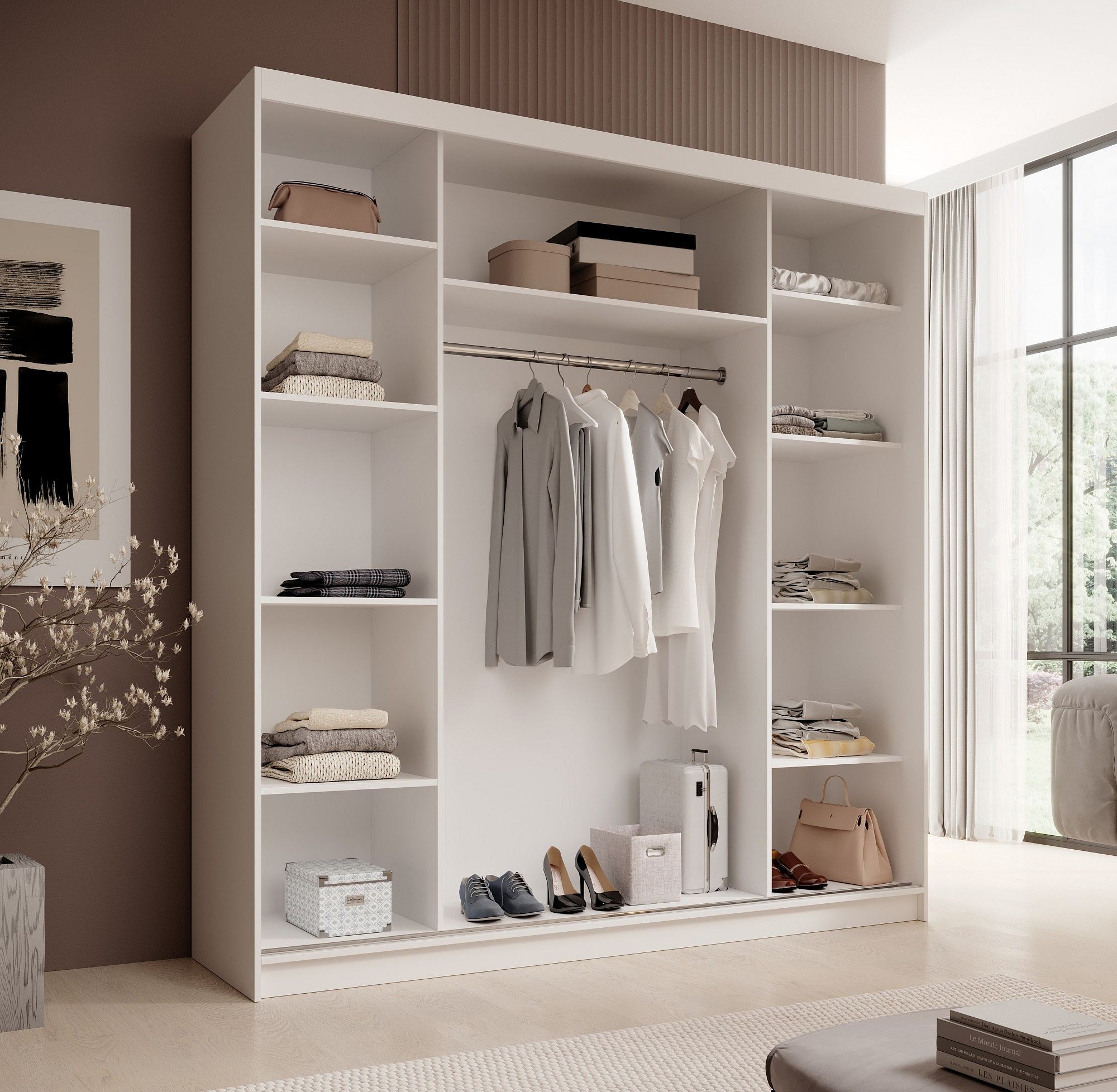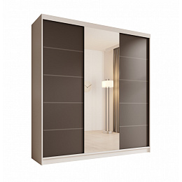 A Sonic 200 tükörrel ellátott szekrény modern és funkcionális bútor, amely ideális hálószobába, gardróbba vagy előszobába. Tolóajtókkal rendelkezik, amelyek megkönnyítik a mindennapi használatot és helyet takarítanak meg a szobában. A központilag elhelyezett nagy tükör nemcsak optikailag növeli a teret, hanem gyakorlati funkciót is betölt, megkönnyítve a mindennapi készülődést az indulásra. A Sonic szekrény ötvözik az esztétikát a praktikummal, tágas belső teret kínálnak polcokkal és ruhatartó rúddal, így kiváló választást jelentenek a modern belső terek számára.