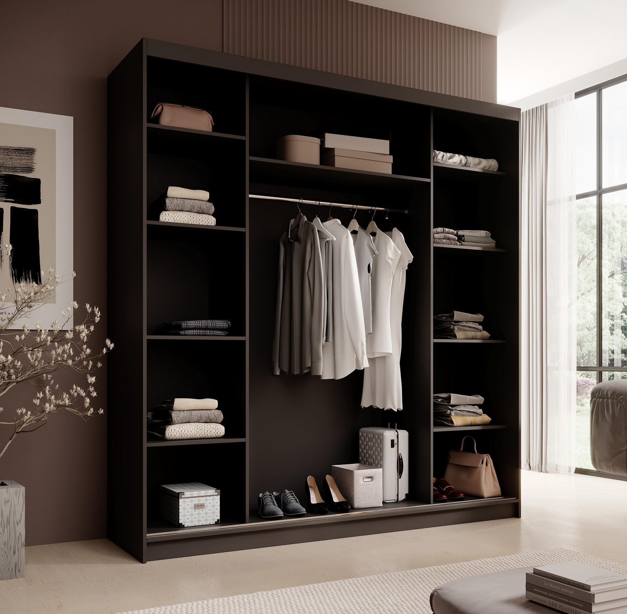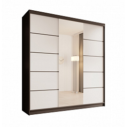 A Sonic 200 tükörrel ellátott szekrény modern és funkcionális bútor, amely ideális hálószobába, gardróbba vagy előszobába. Tolóajtókkal rendelkezik, amelyek megkönnyítik a mindennapi használatot és helyet takarítanak meg a szobában. A központilag elhelyezett nagy tükör nemcsak optikailag növeli a teret, hanem gyakorlati funkciót is betölt, megkönnyítve a mindennapi készülődést az indulásra. A Sonic szekrény ötvözik az esztétikát a praktikummal, tágas belső teret kínálnak polcokkal és ruhatartó rúddal, így kiváló választást jelentenek a modern belső terek számára.