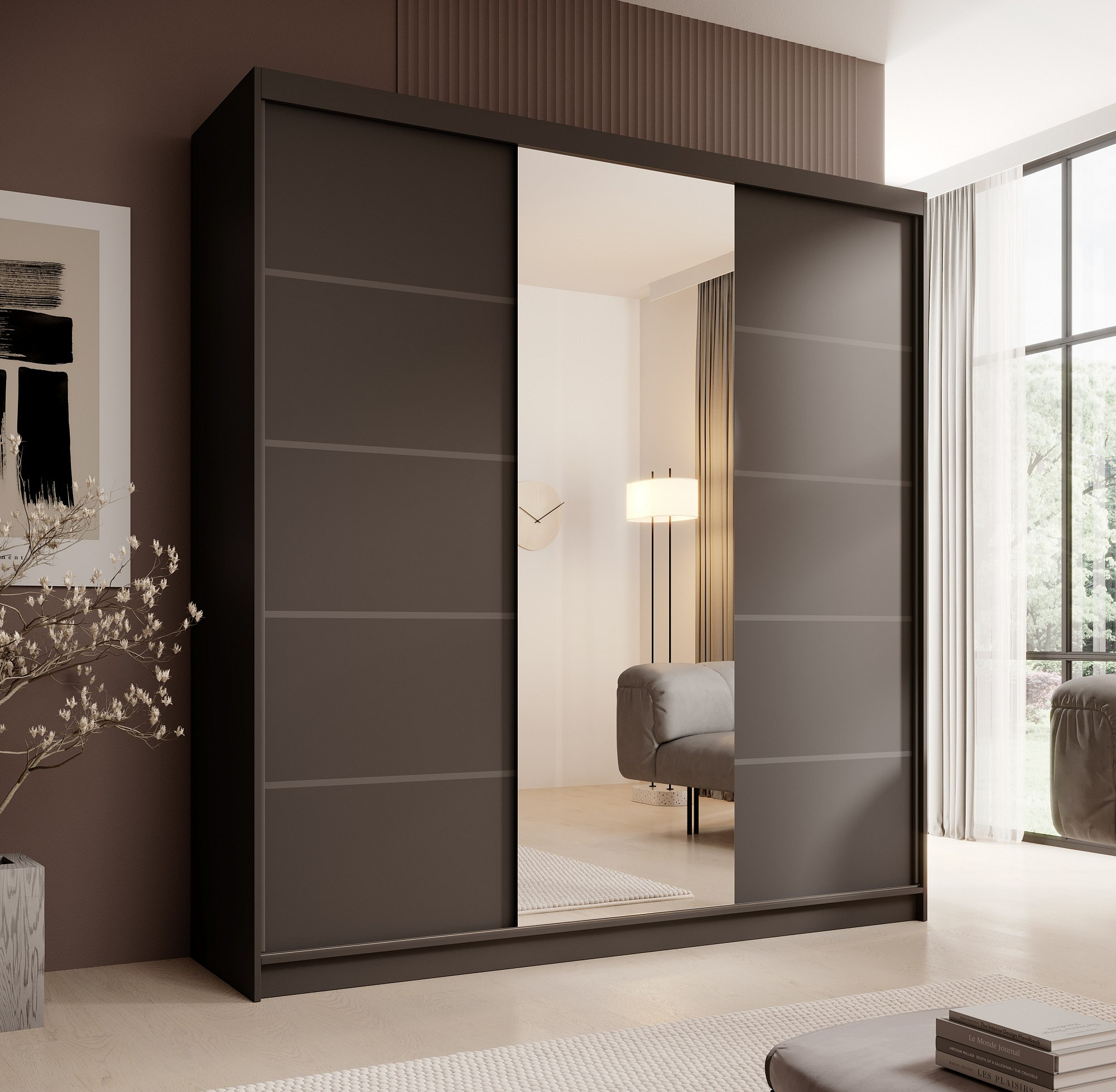 A Sonic 200 tükörrel ellátott szekrény modern és funkcionális bútor, amely ideális hálószobába, gardróbba vagy előszobába. Tolóajtókkal rendelkezik, amelyek megkönnyítik a mindennapi használatot és helyet takarítanak meg a szobában. A központilag elhelyezett nagy tükör nemcsak optikailag növeli a teret, hanem gyakorlati funkciót is betölt, megkönnyítve a mindennapi készülődést az indulásra. A Sonic szekrény ötvözik az esztétikát a praktikummal, tágas belső teret kínálnak polcokkal és ruhatartó rúddal, így kiváló választást jelentenek a modern belső terek számára.